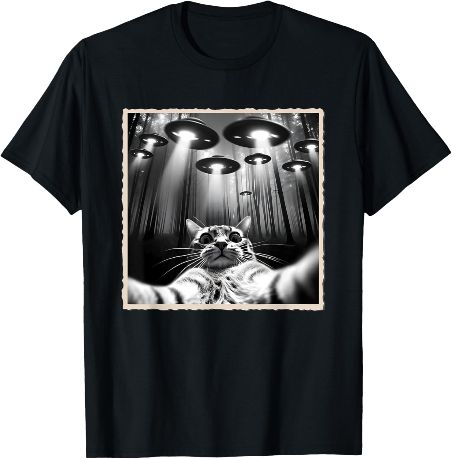 Cat Selfie With UFO | Funny UFOs & Cat T-Shirt
