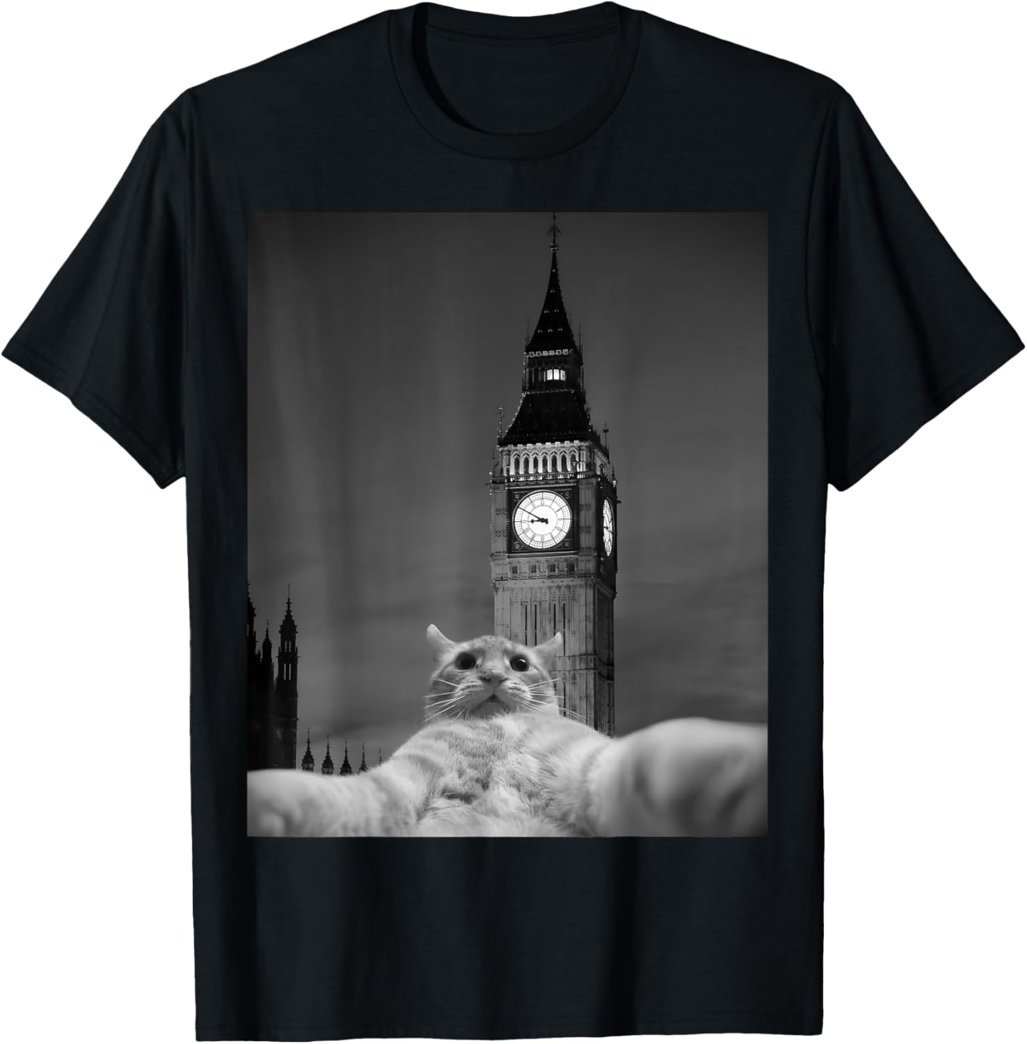 Cat Selfie Big Ben London Funny Animal Casual Outfit T-Shirt