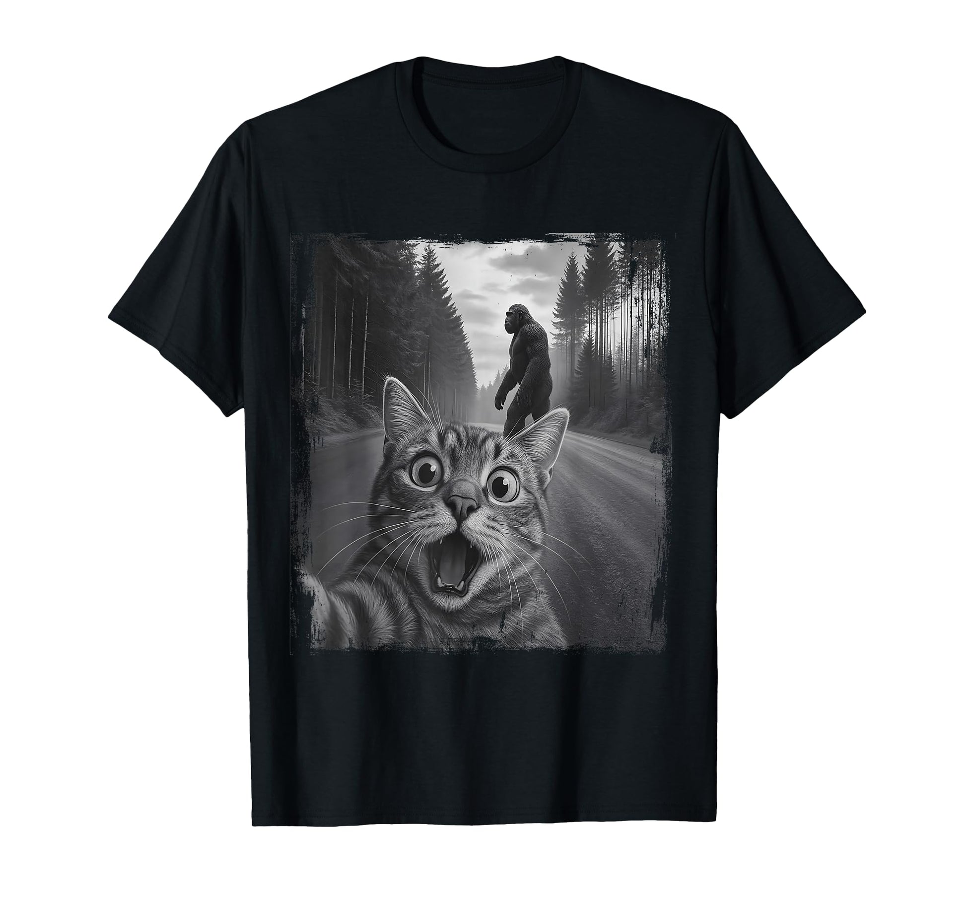 Cat Selfie Sasquatch Bigfoot Funny Apparel for Men Kids T-Shirt