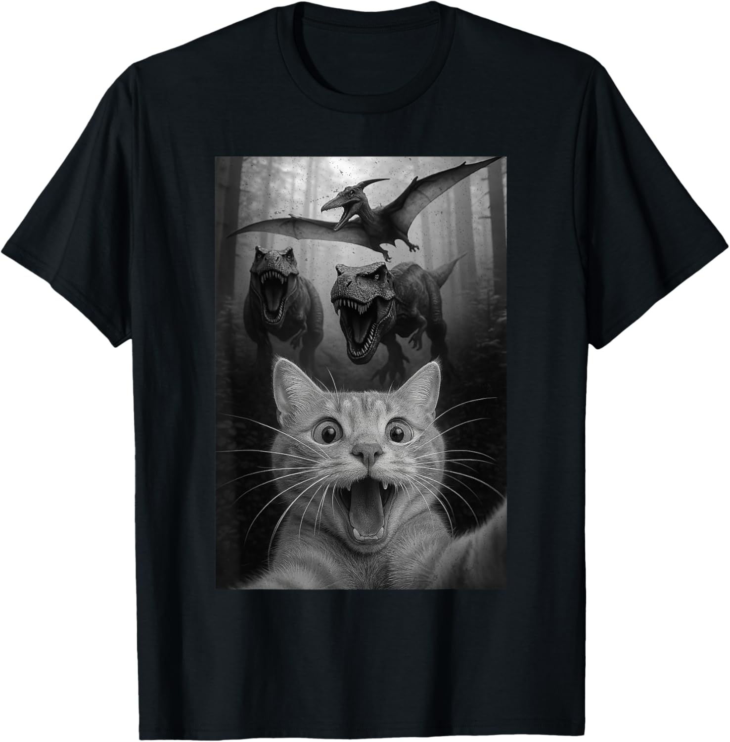 Cat Selfie With Funny Dinosaur Meme T-Shirt
