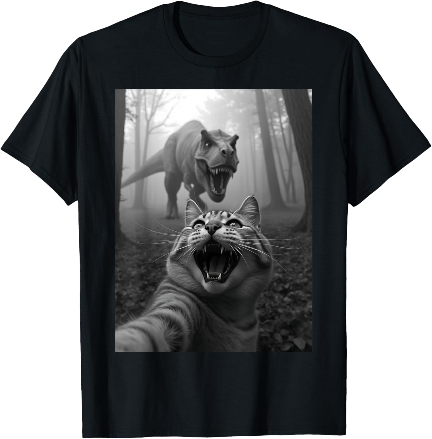Cat Selfie With T-Rex Dinosaur T-Shirt for Men Women Girls Kids