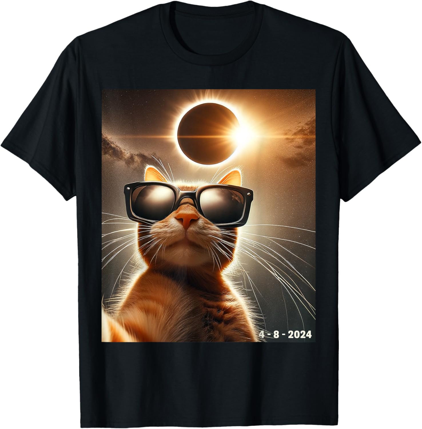 cat taking a selfie with solar 2024 eclipse wearing Glasses T-Shirt