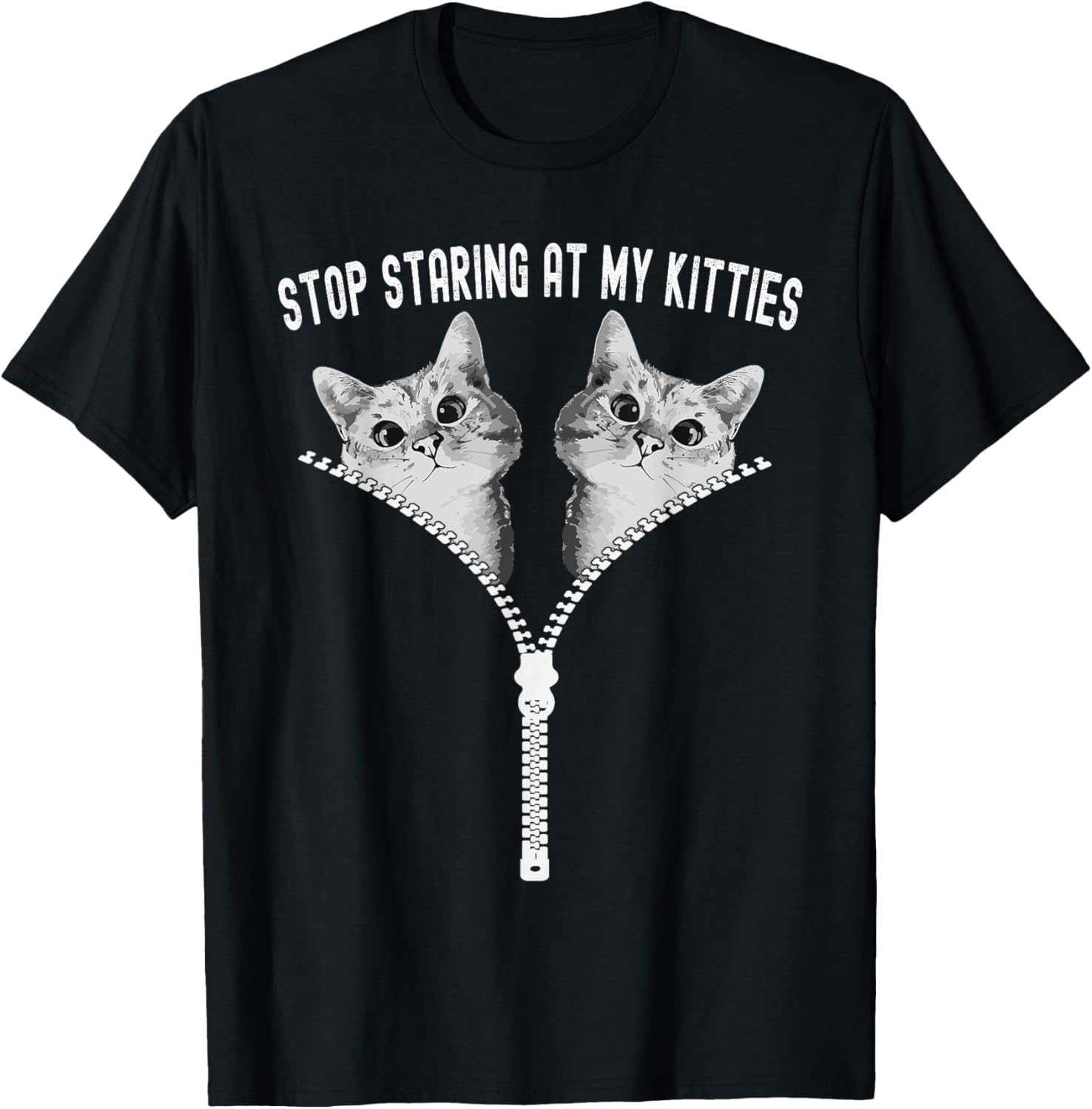 Cat Lovers Stop Staring At My Kitties Adult Cute Funny Cat T-Shirt