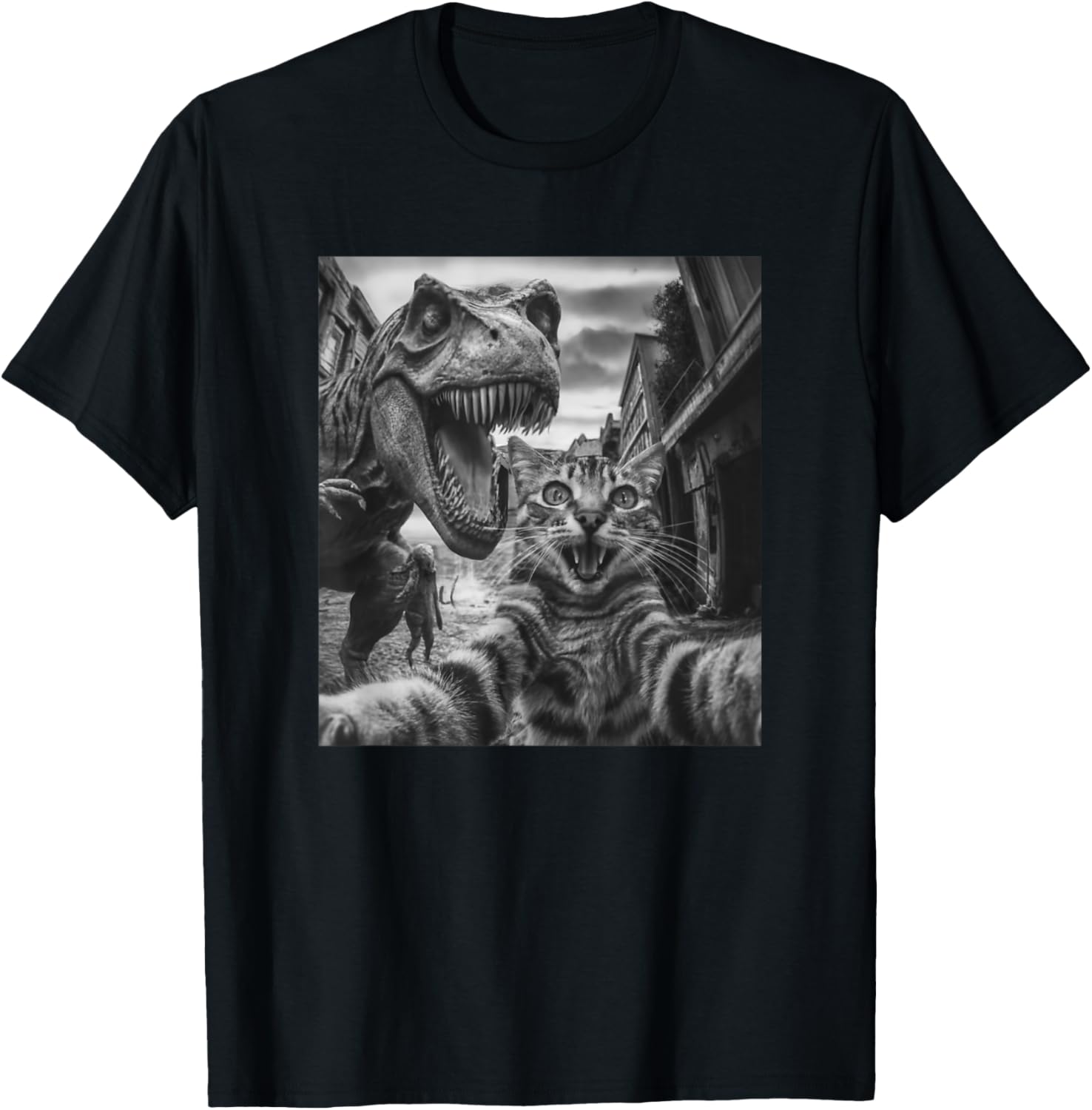 Cat T Rex Dinosaur Selfie Funny Retro Classic Photo T-Shirt