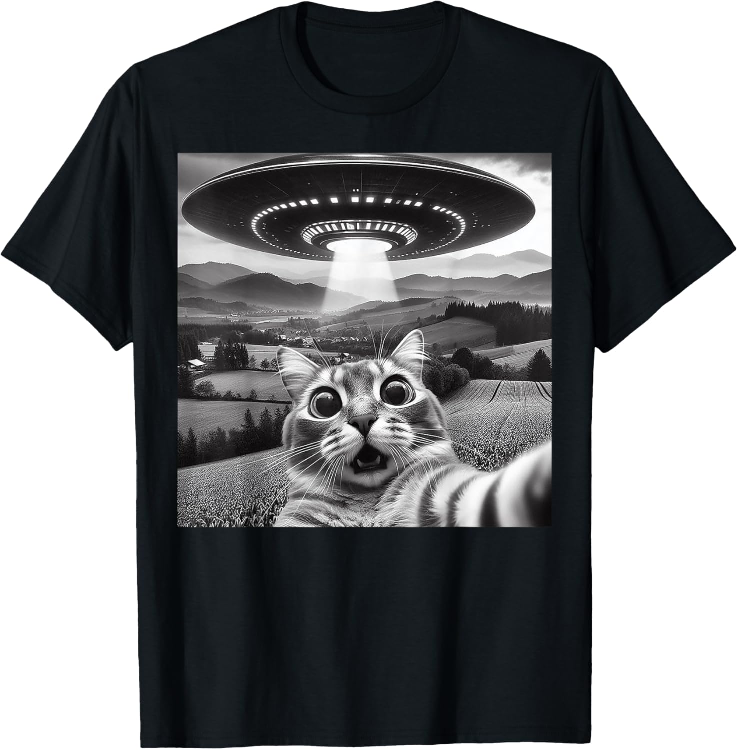 Cat Selfie With Alien UFO Funny Cat Gifts For Kid Men Women T-Shirt