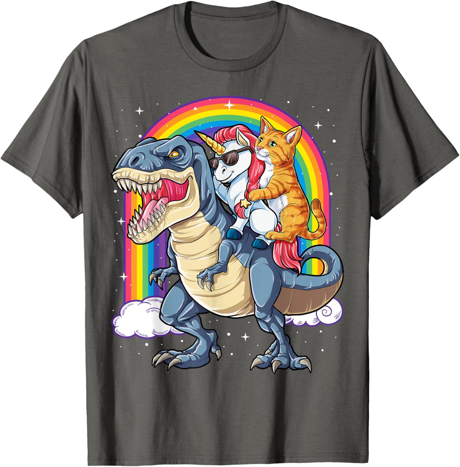 Cat Unicorn Riding Dinosaur T rex Kitten Lover Space Galaxy T-Shirt