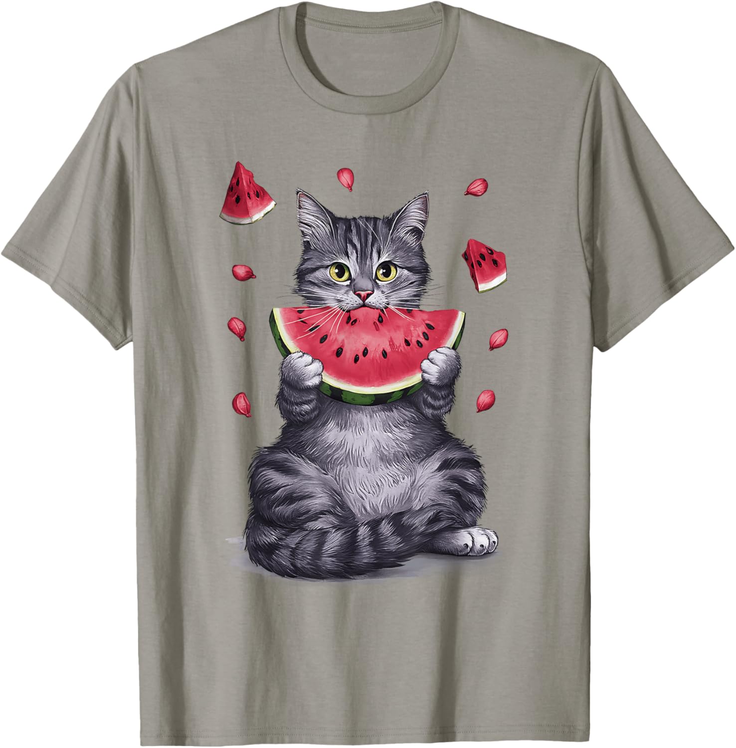 Cute Cat Eating Watermelon Fruit Summer Men Women Girls T-Shirt