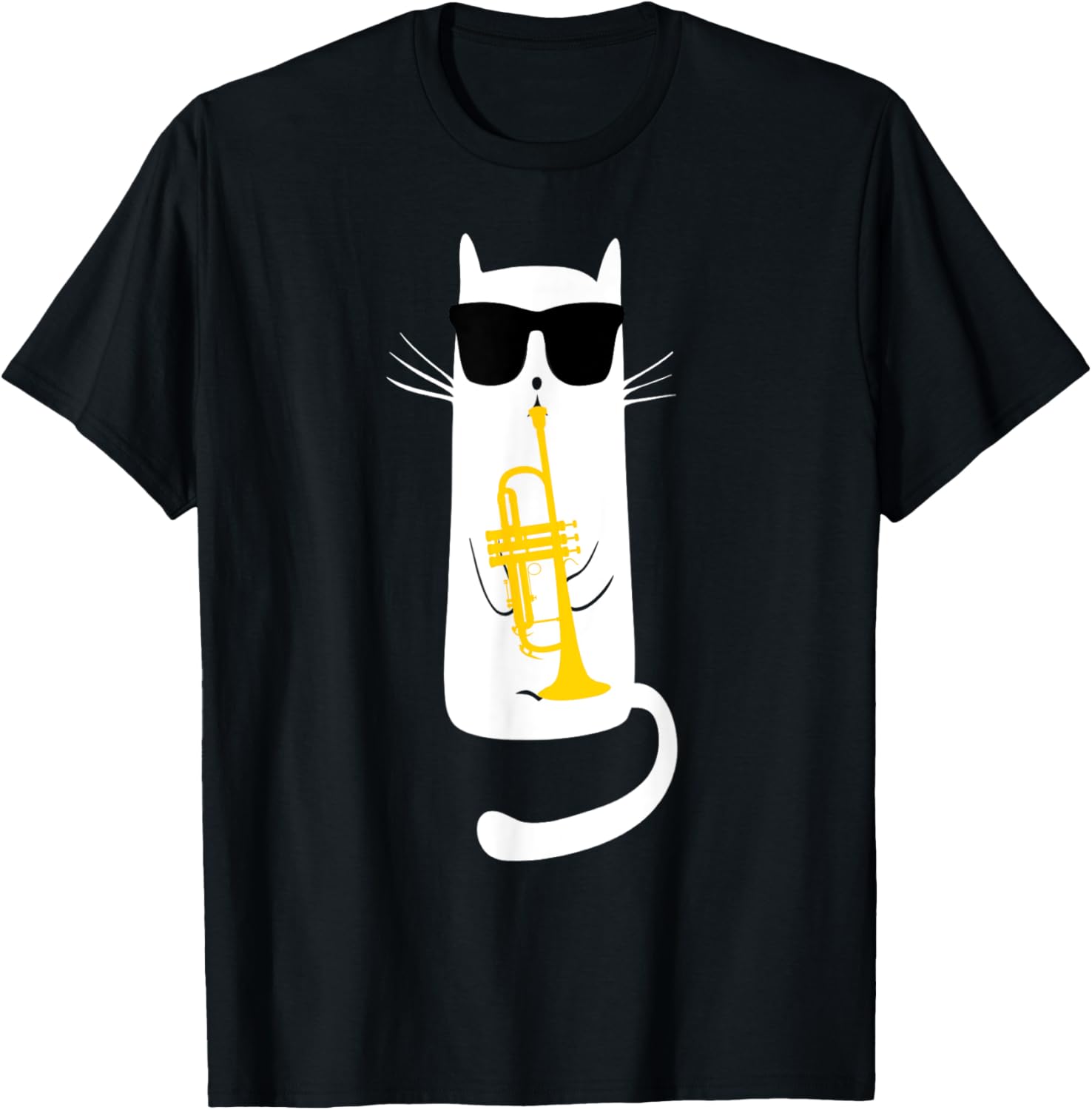 Funny Cat Wearing Sunglasses Playing Trumpet T-Shirt