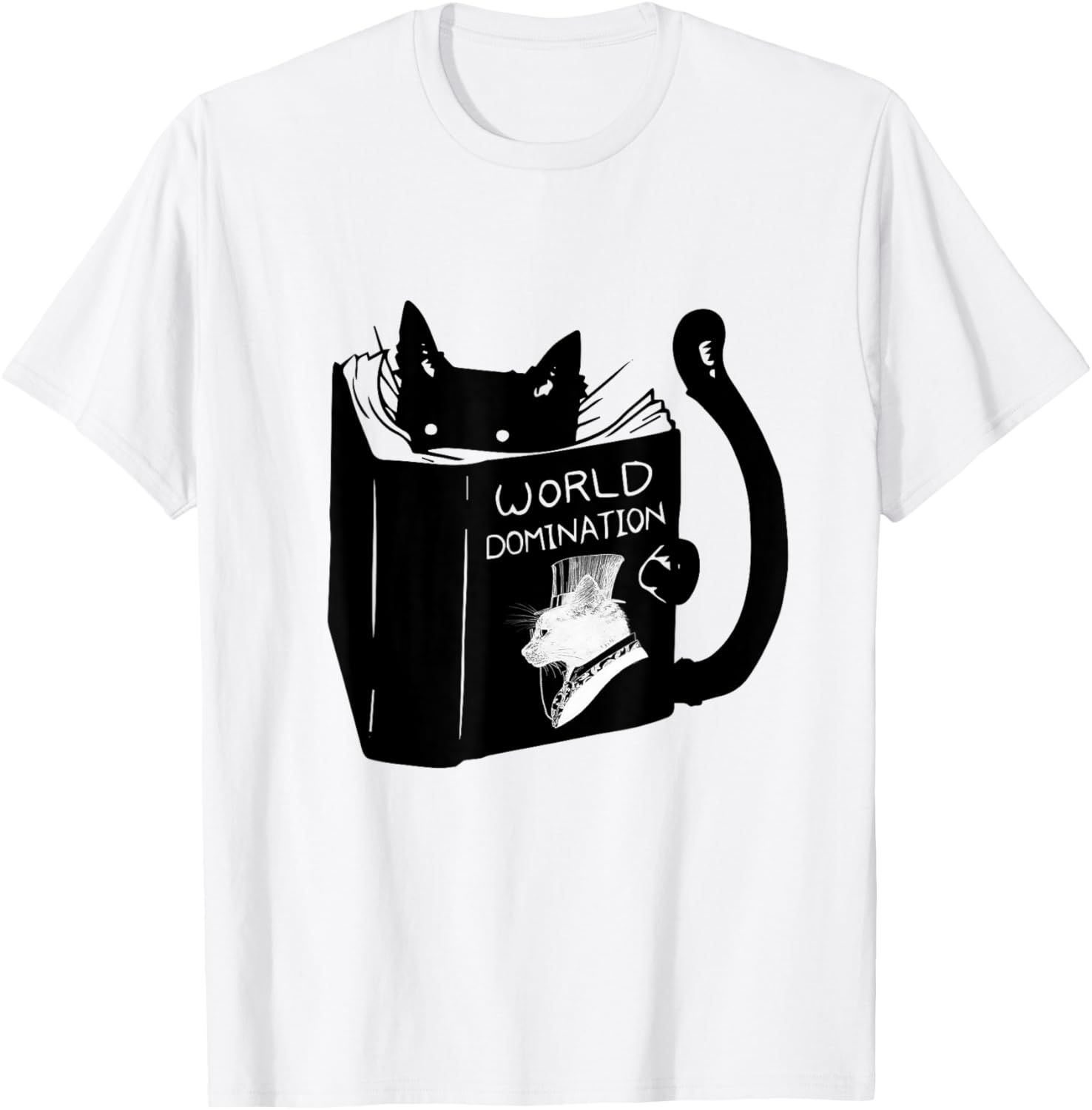 Cat World Domination T-Shirt - Unisex-Adults, Small, White, Short Sleeve