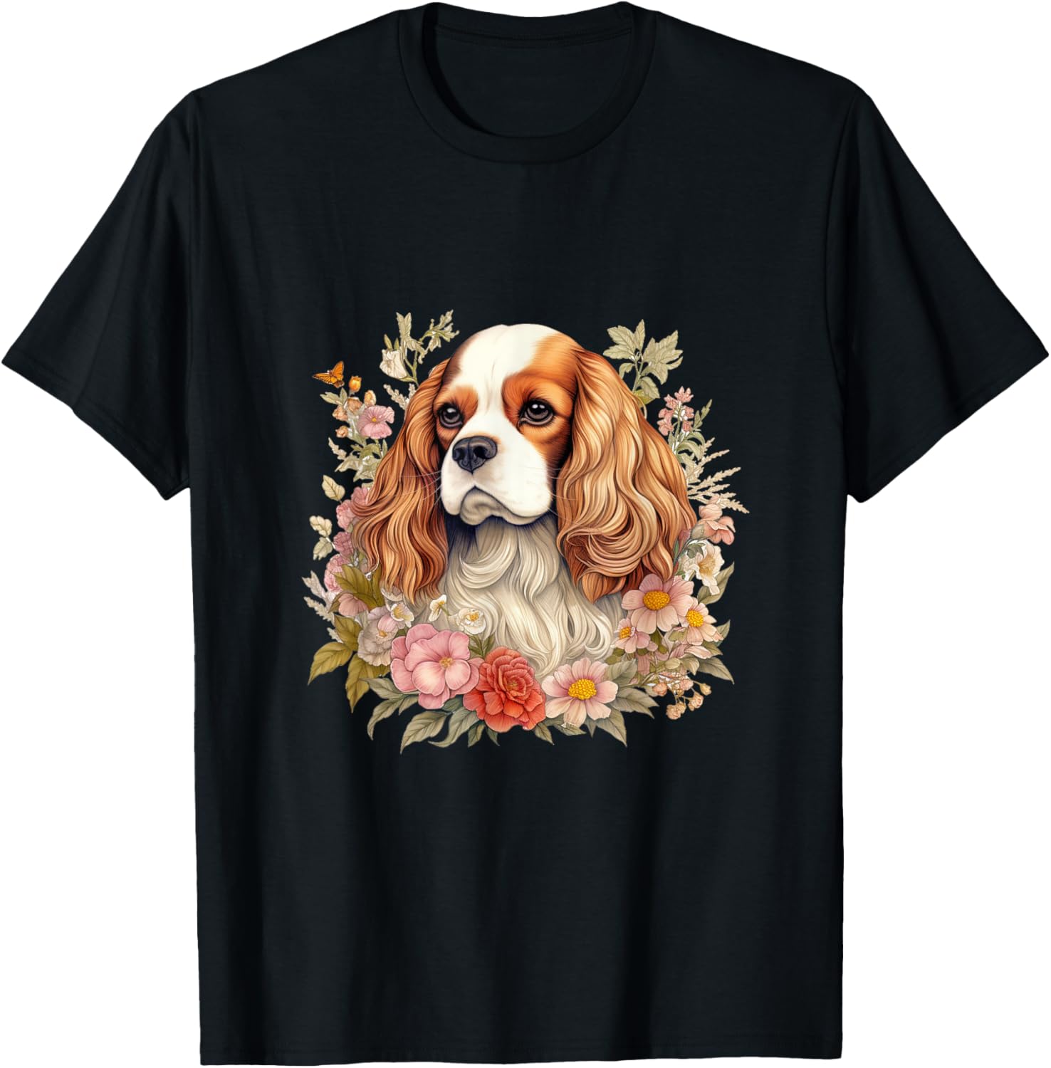 Cavalier King Charles Spaniel Dog With Flowers Floral T-Shirt