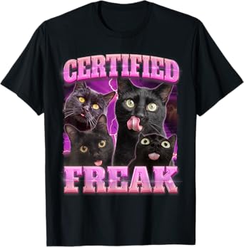 Certified Freak Black Cat Funny Meme Pet Cats Lovers Mom Men Women T-Shirt