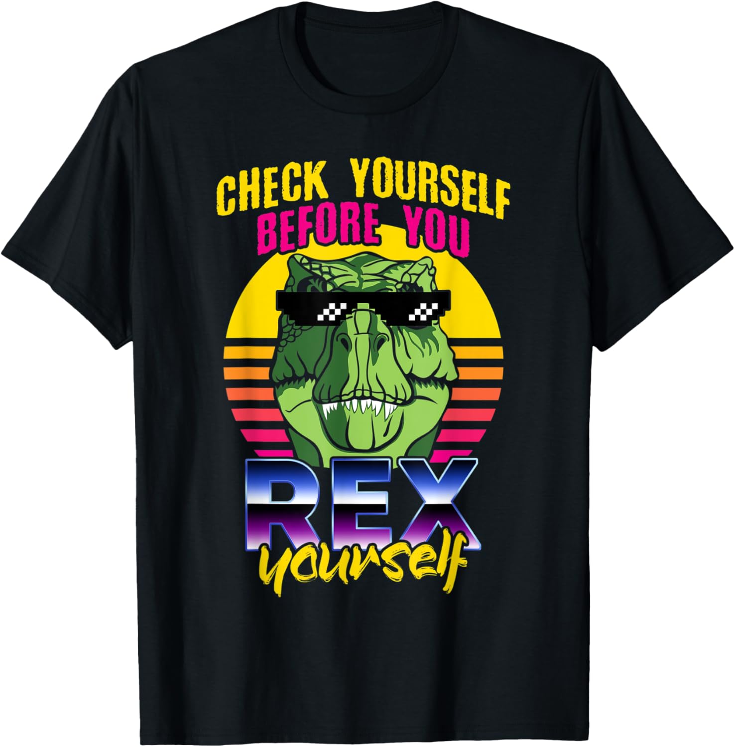 Check Yourself Before You Rex Yourself Funny T Rex Dinosaur T-Shirt