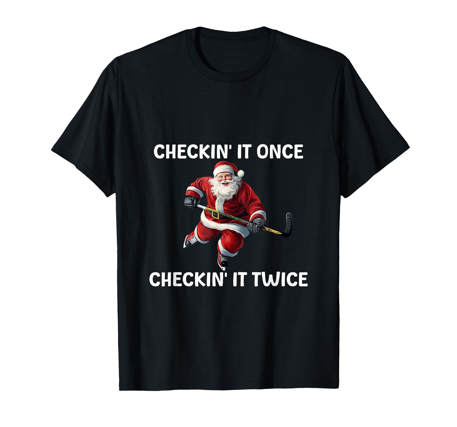 Checkin' It Once Checkin' It Twice Santa Hockey Christmas T-Shirt