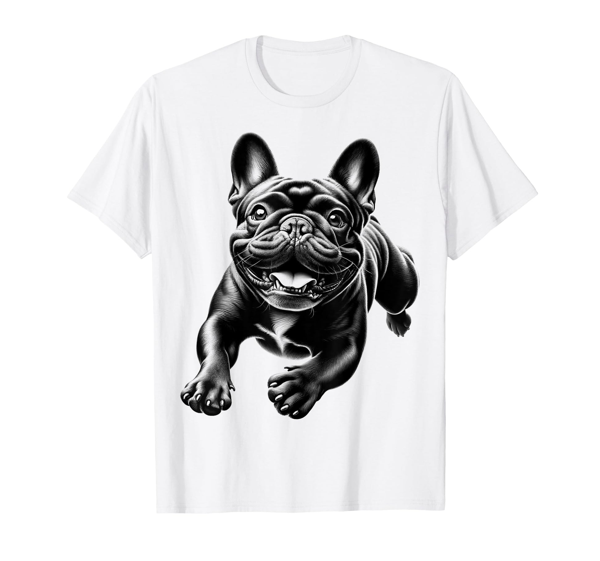Cheerful Black French Bulldog in Jump Men Women Kids T-Shirt