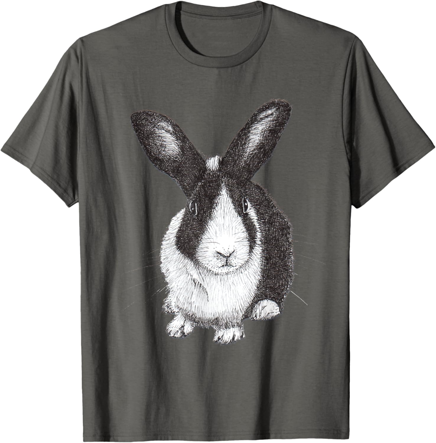 ChescaMade Dutch Bunny Rabbit Drawing T-Shirt - Women's Grey Rabbit Themed T-Shirt - Small - Classic Fit - Short Sleeve - Cotton, Polyester - Unique Rabbit Drawing Graphic