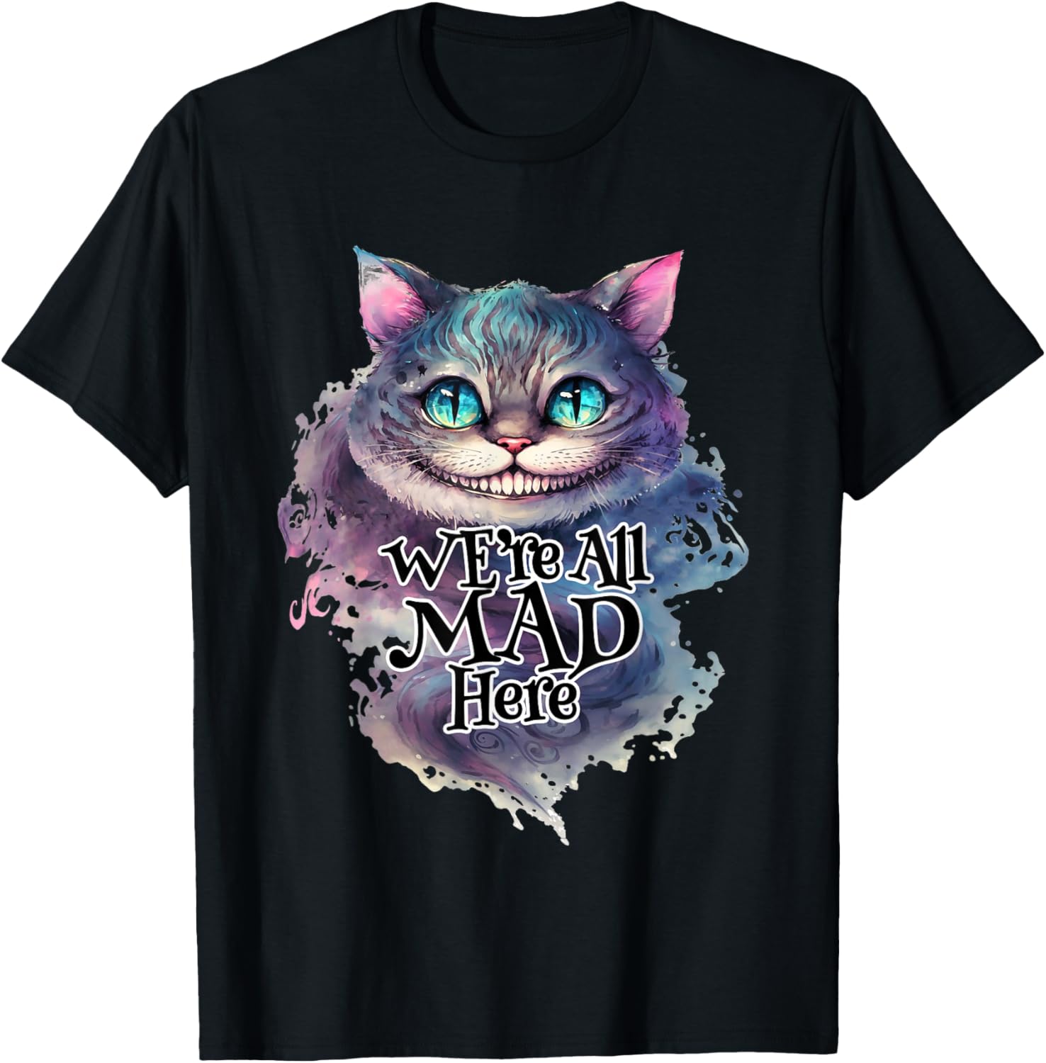 Cheshire cat We're All MAD Here Alice in Wonderland Quote T-Shirt