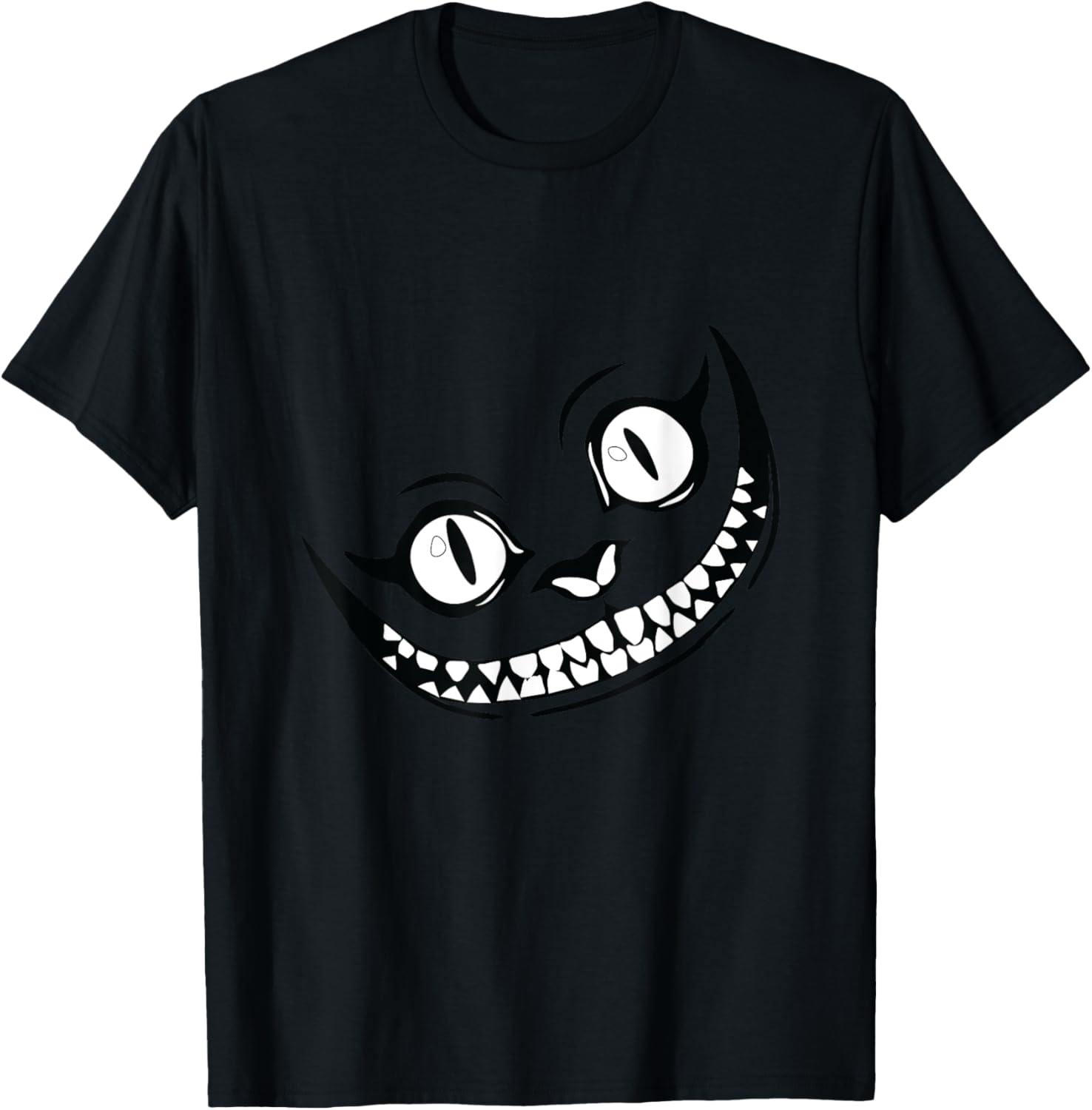 Cheshire Cat Grinning in Black and White T-Shirt