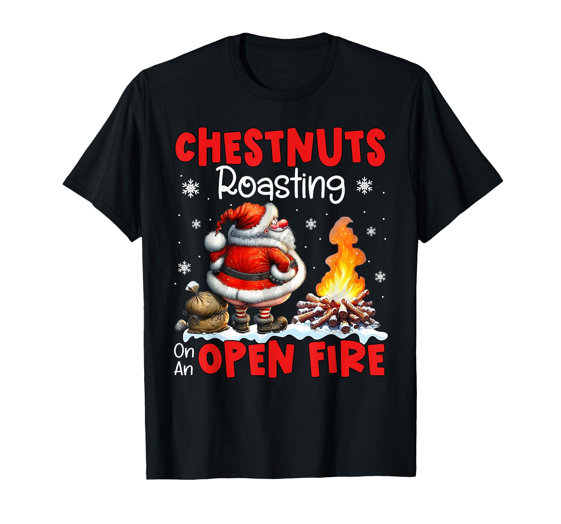 Chestnuts Roasting On Open Fire Funny Rude Santa Christmas T-Shirt