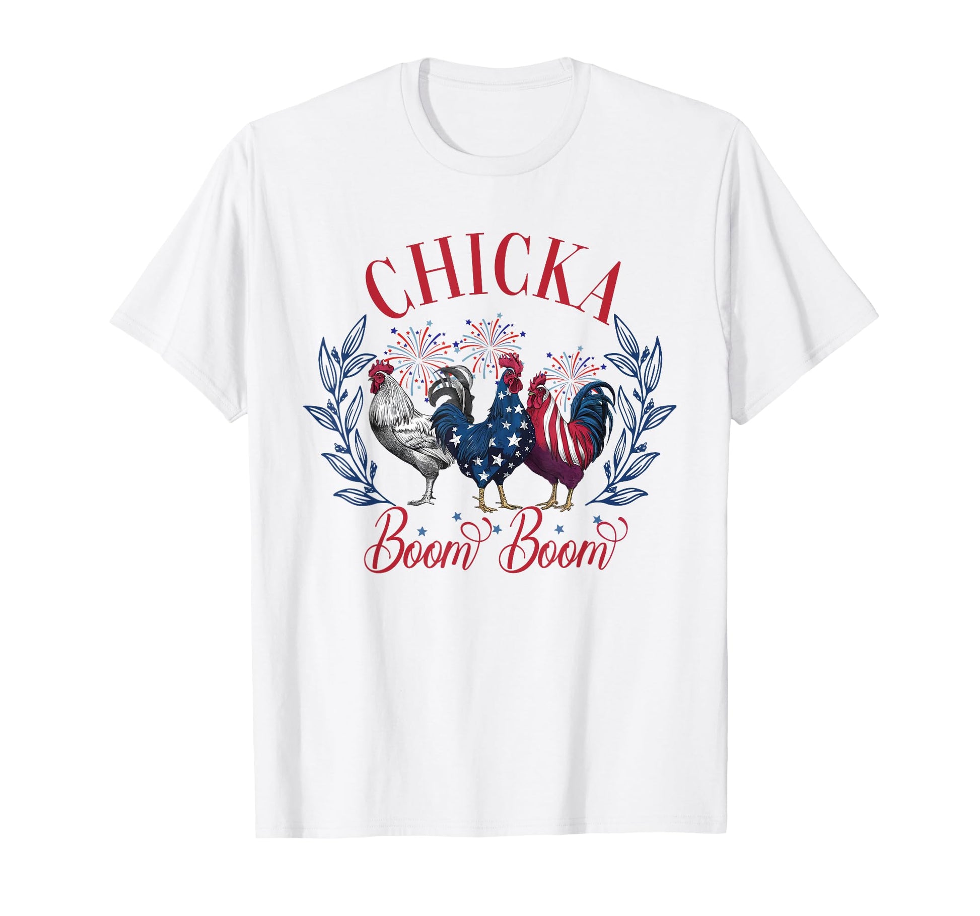 Chicka Boom Boom Cute Chicken Retro 4th of July America T-Shirt for Women Men