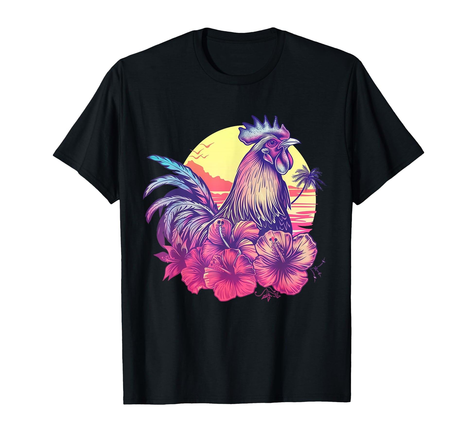 Chicken Hawaiian Flowers Rooster Kauai Hawaii Vintage T-Shirt