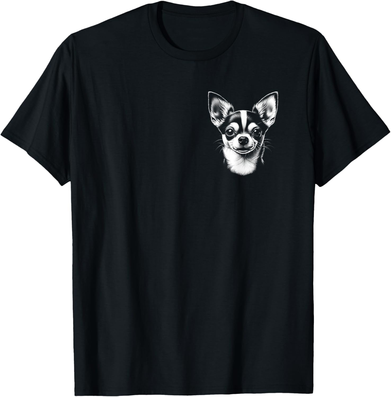 Cute Chihuahua Head Drawing Style on Chest T-Shirt