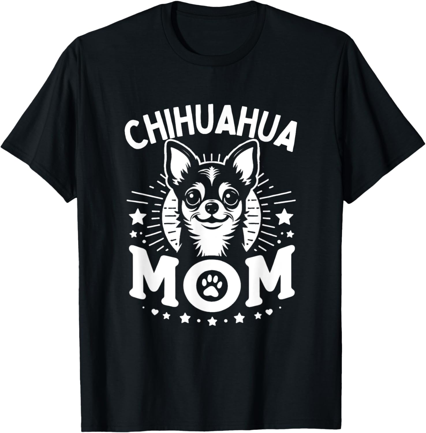 Chihuahuas Lover Gifts & Chihuahua Shirts Women Chihuahua Mom T-Shirt Black Women's Small Crew Neck Short Sleeve Classic Letter Print Dog Mother Chihuahuas T-Shirt