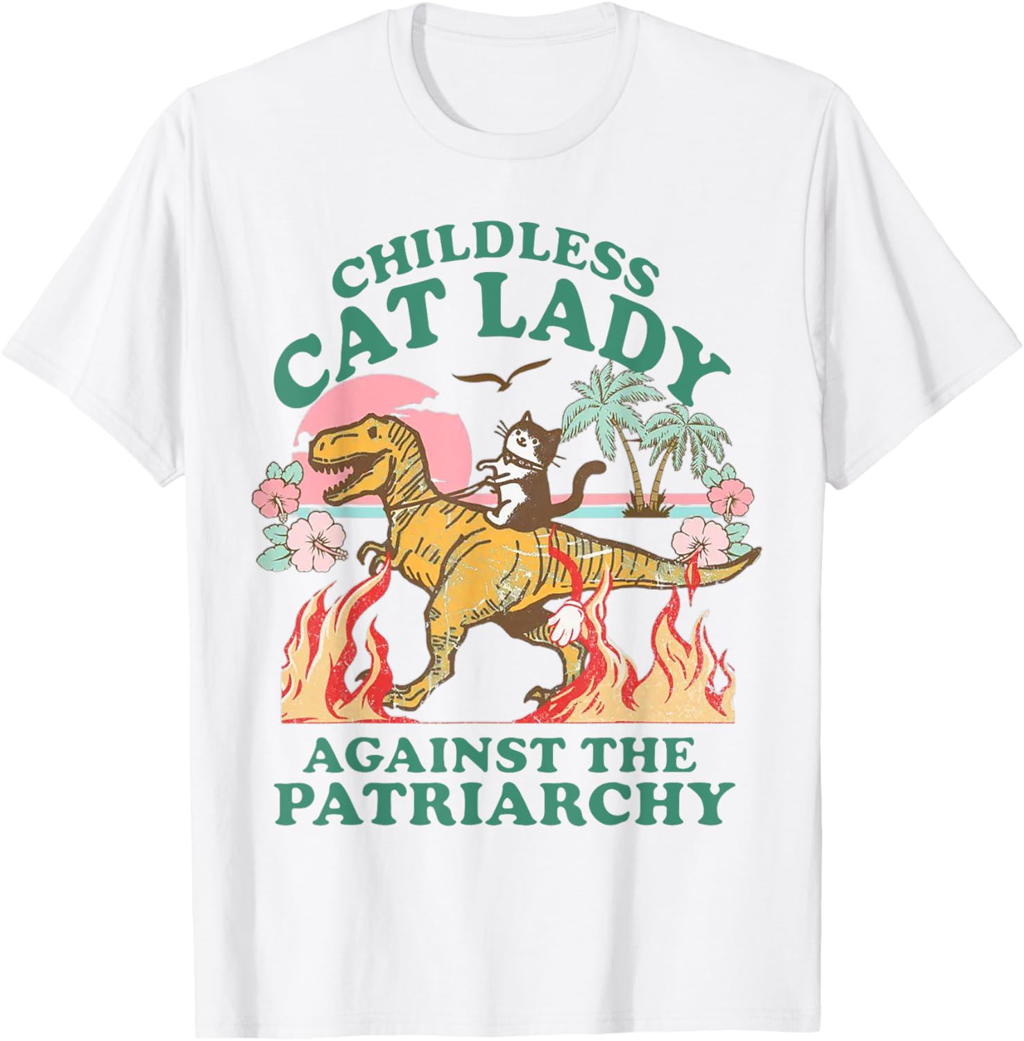 Childless Cat Lady Against The Patriarchy Funny Cat Dinosaur T-Shirt