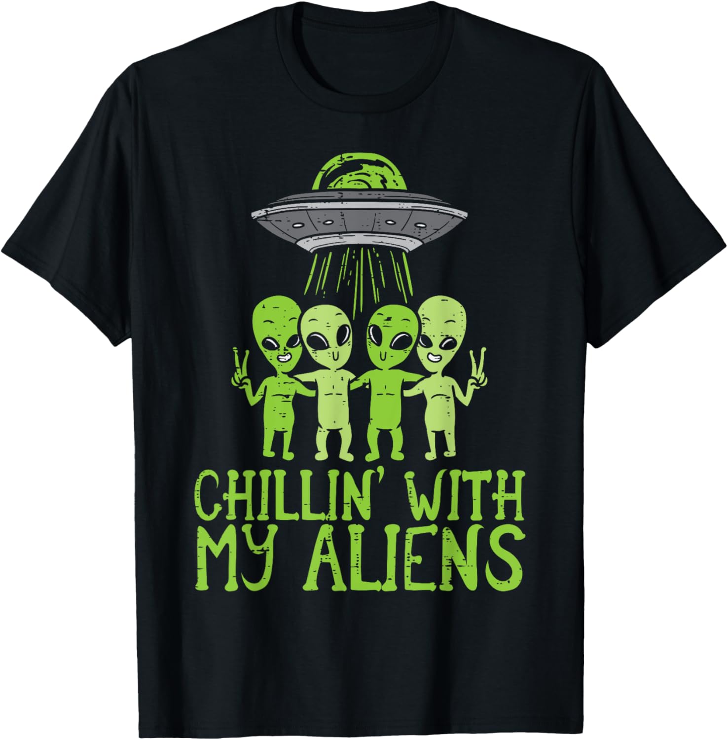 Chillin With My Aliens Group Toddler Boys Halloween Kids T-Shirt