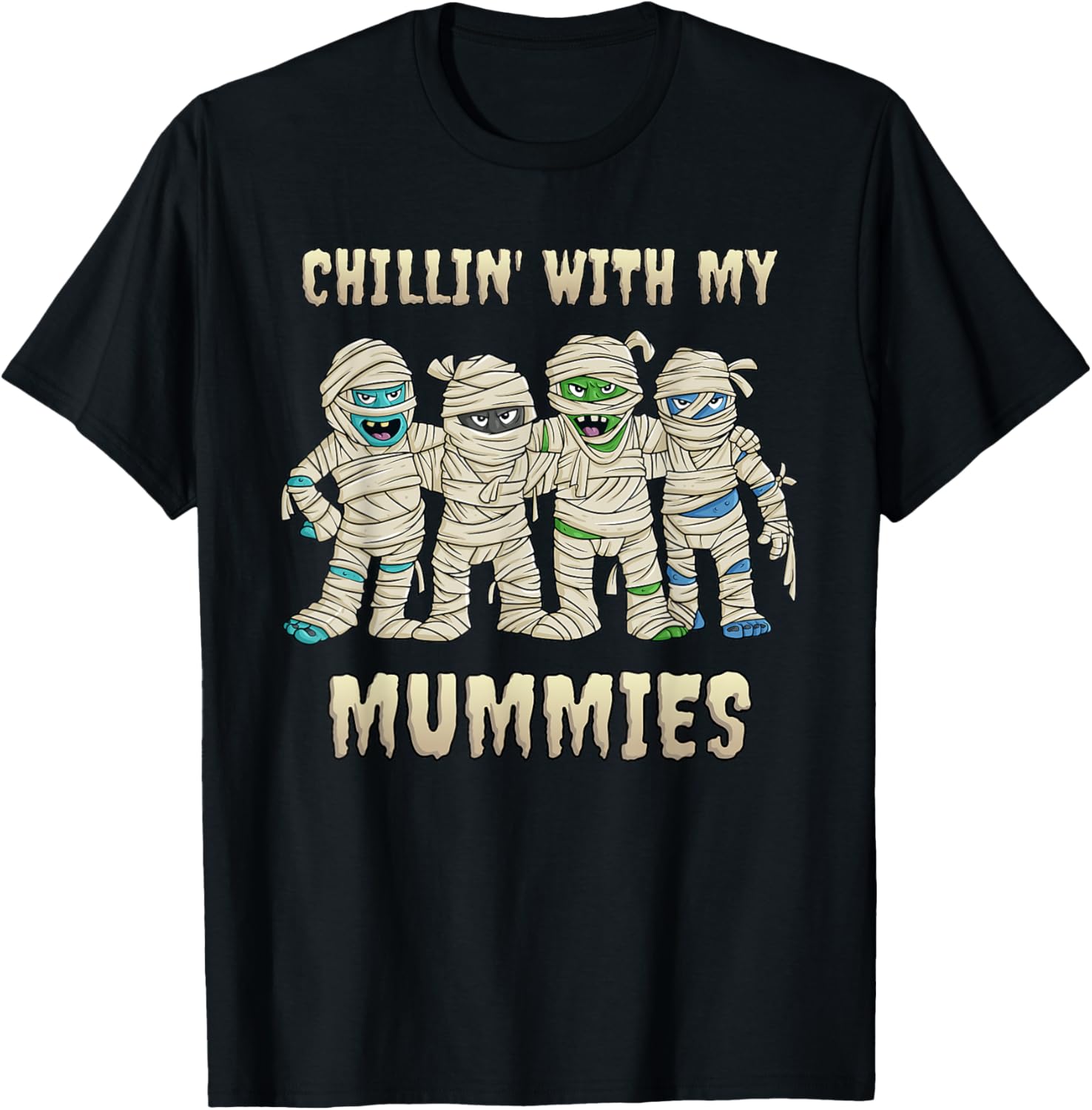 Chillin With My Mummies Halloween Boys Kids Funny T-Shirt
