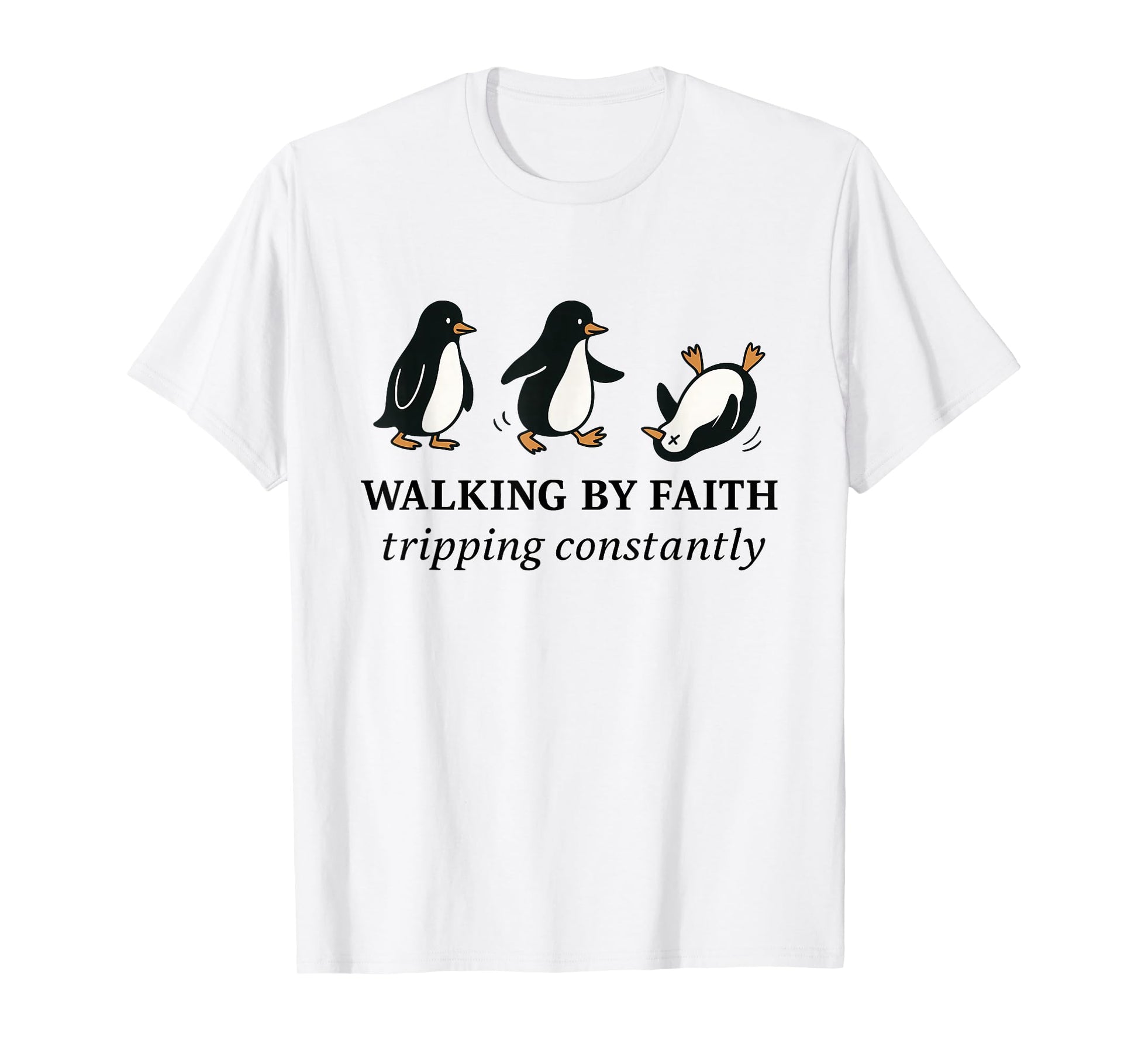 Christian Penguin Walking by Faith Tripping Constantly Bible T-Shirt