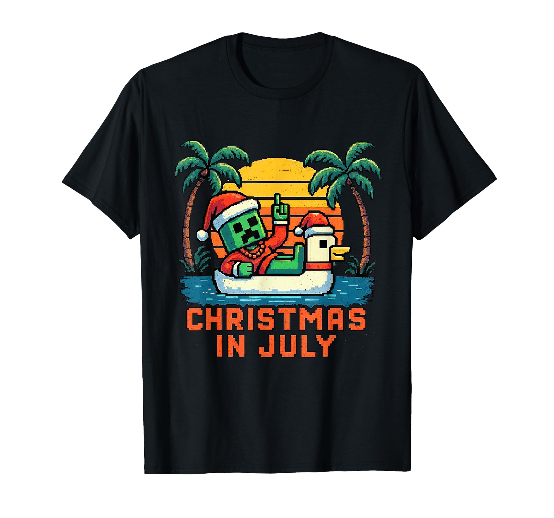 Christmas In July Funny Santa Zombie Chicken Pixel Art Kids T-Shirt
