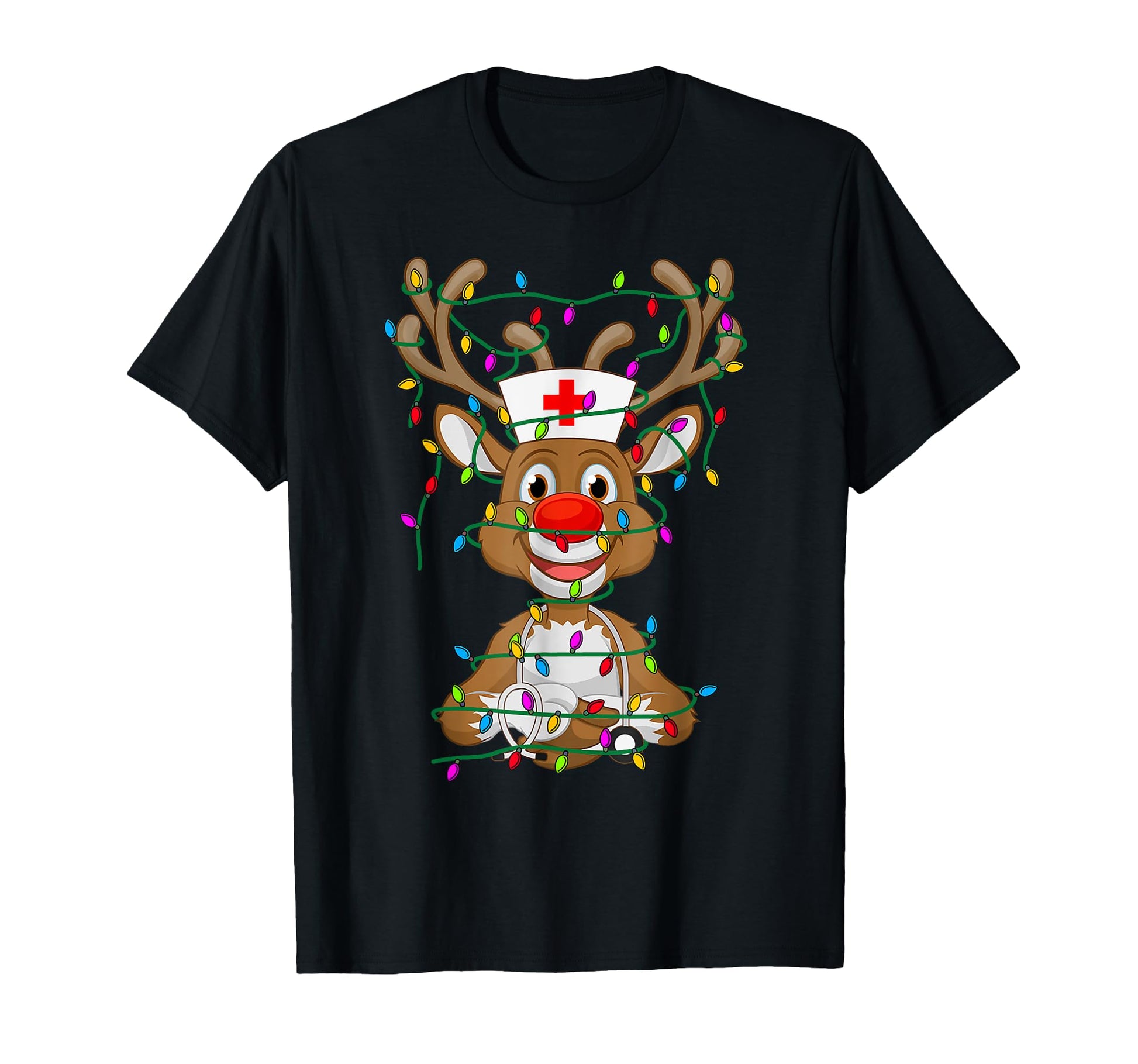 Christmas Light Reindeer Scrubs Rubber Gloves Nurses Gifts T-Shirt