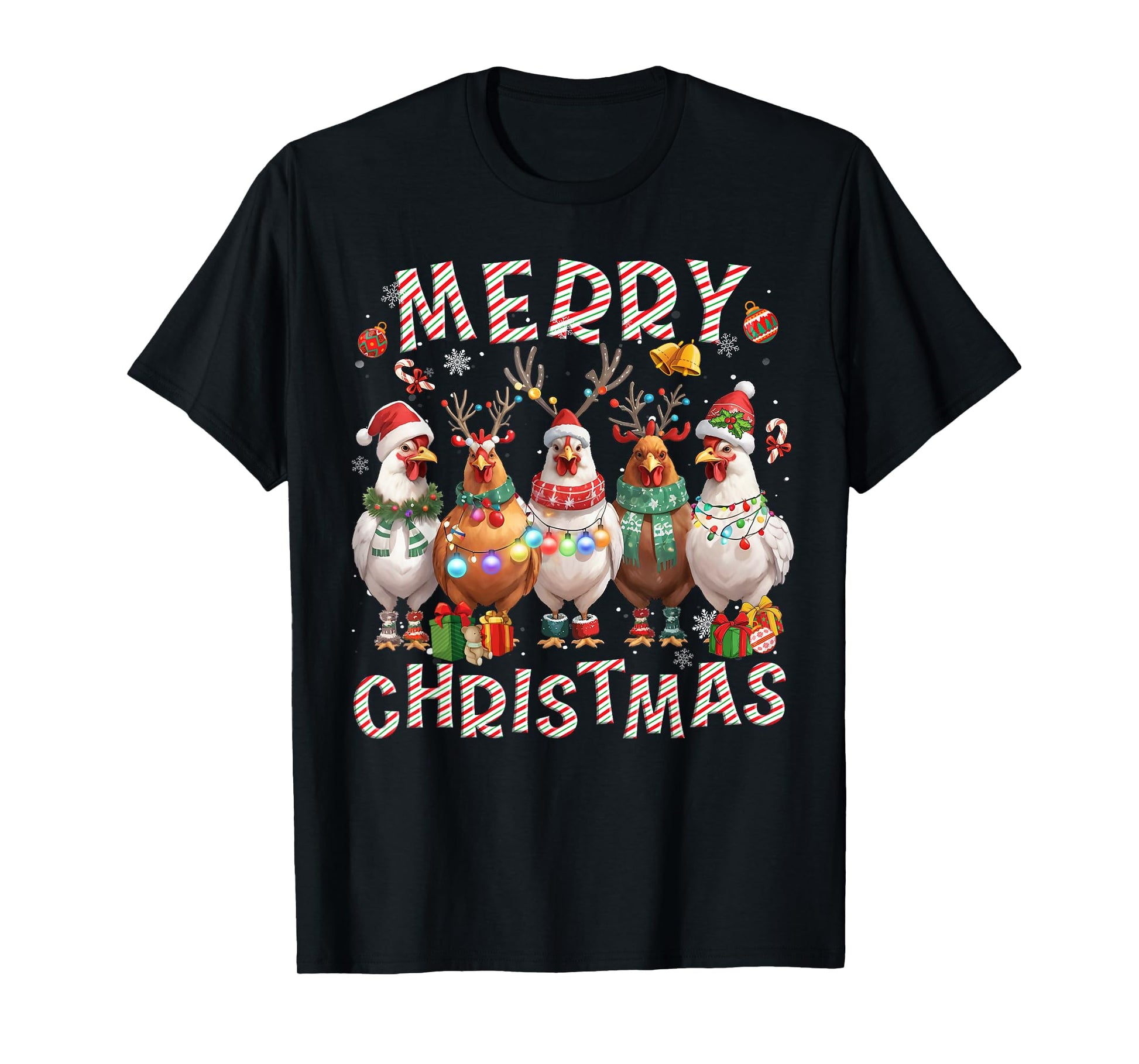 Christmas Lights Chicken Santa Funny Xmas Tree T-Shirt