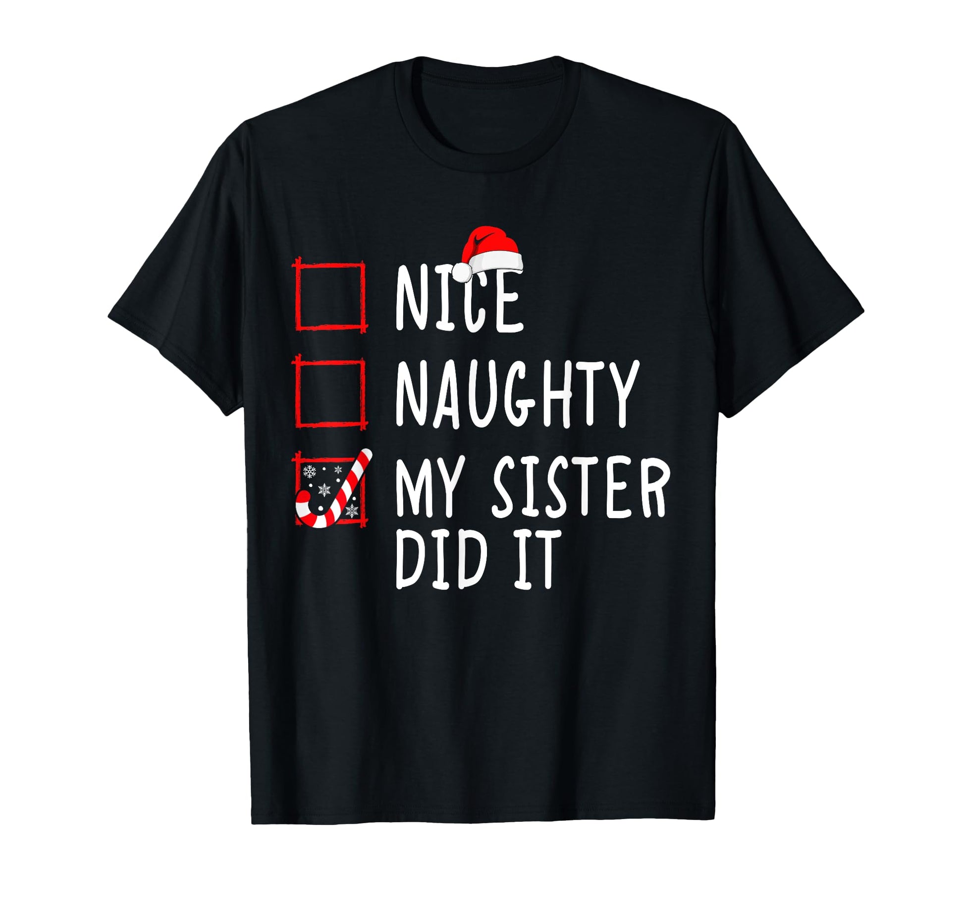 Christmas Nice Naughty Sister Did It Xmas Family Boys Girls T-Shirt