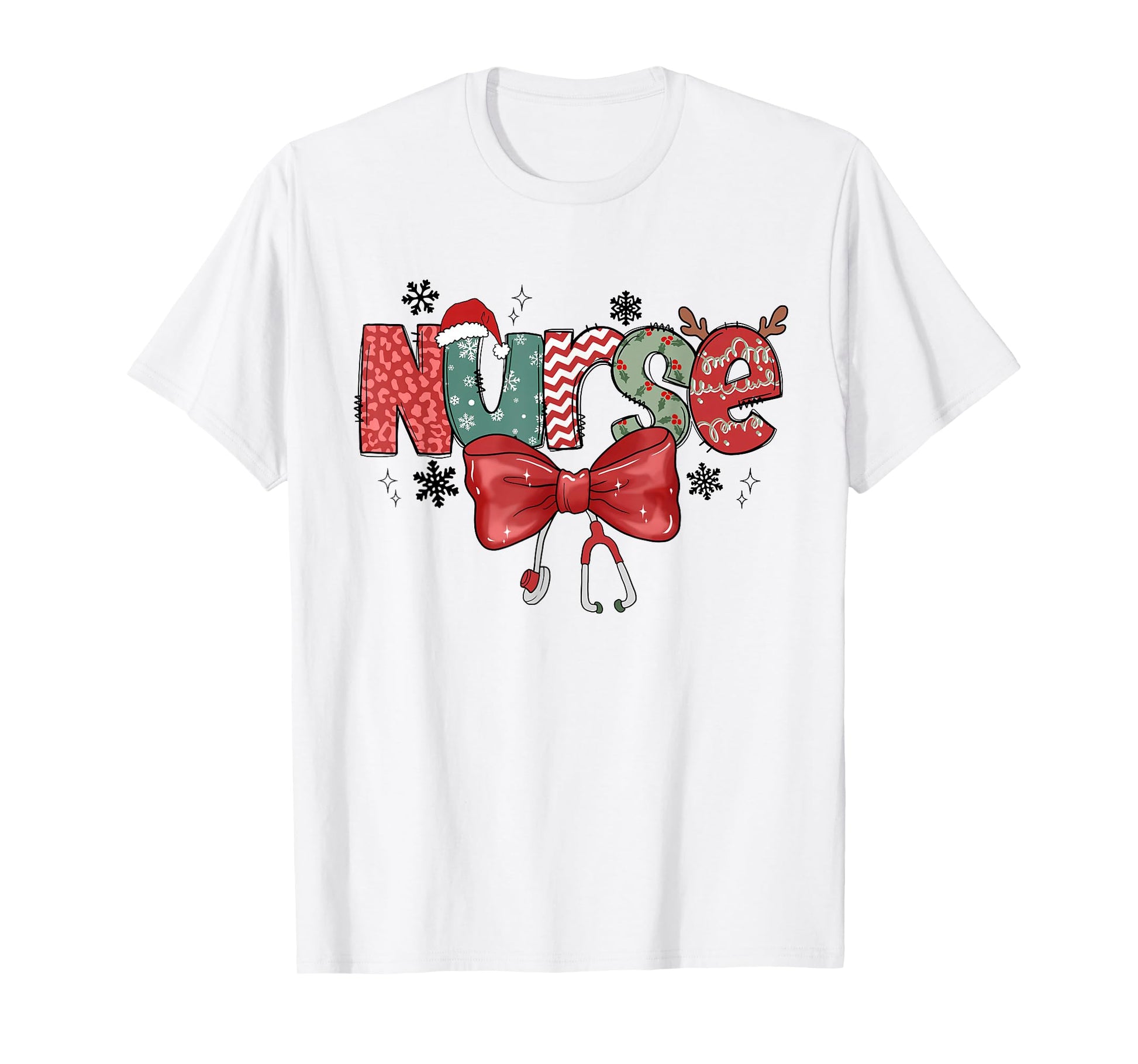 Christmas Nurse Coquette Bow Stethoscope Nursing Xmas Pjs T-Shirt