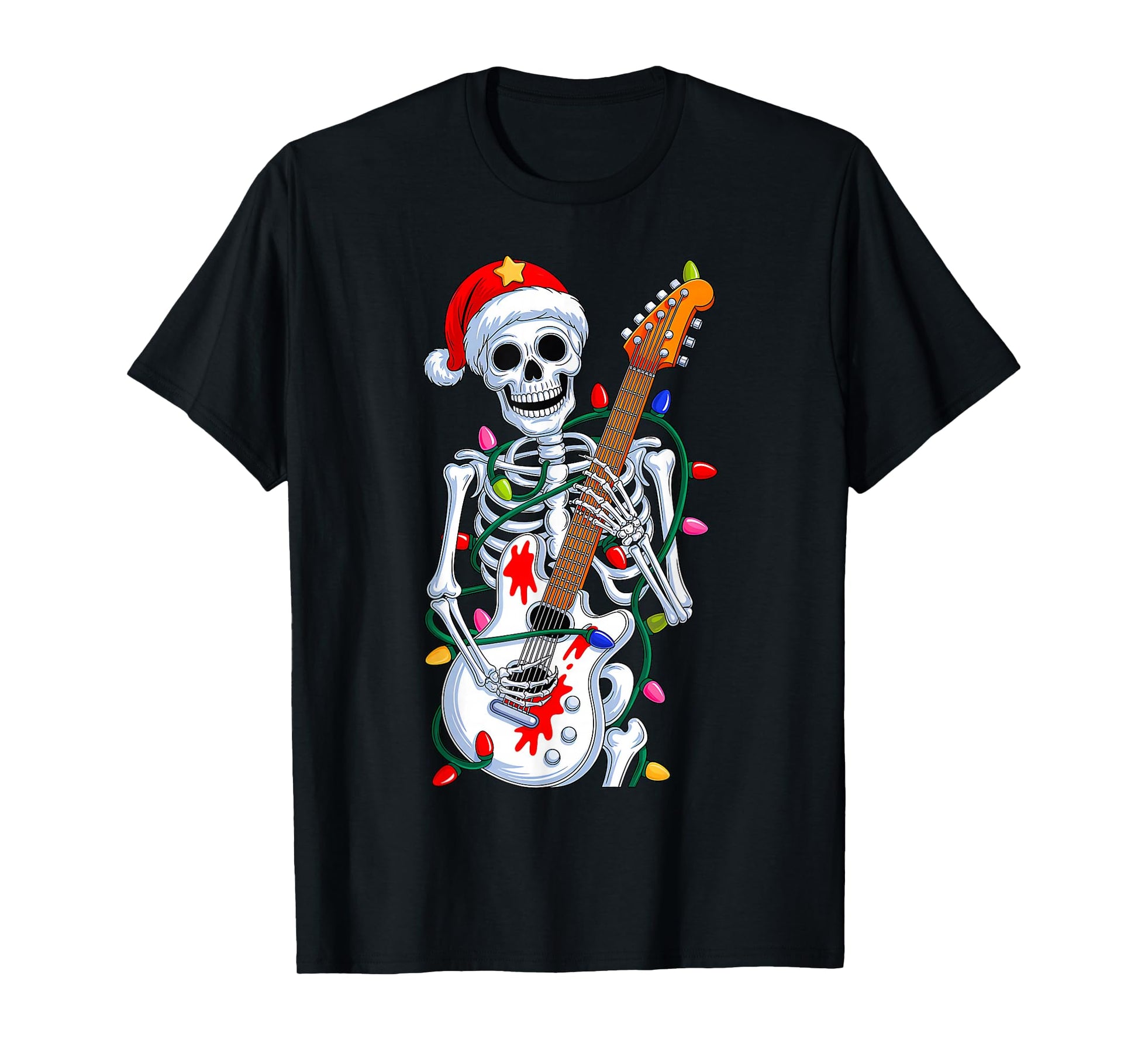 Christmas Rocker Skeleton Santa Rock Hand Xmas Men Boys Kids T-Shirt