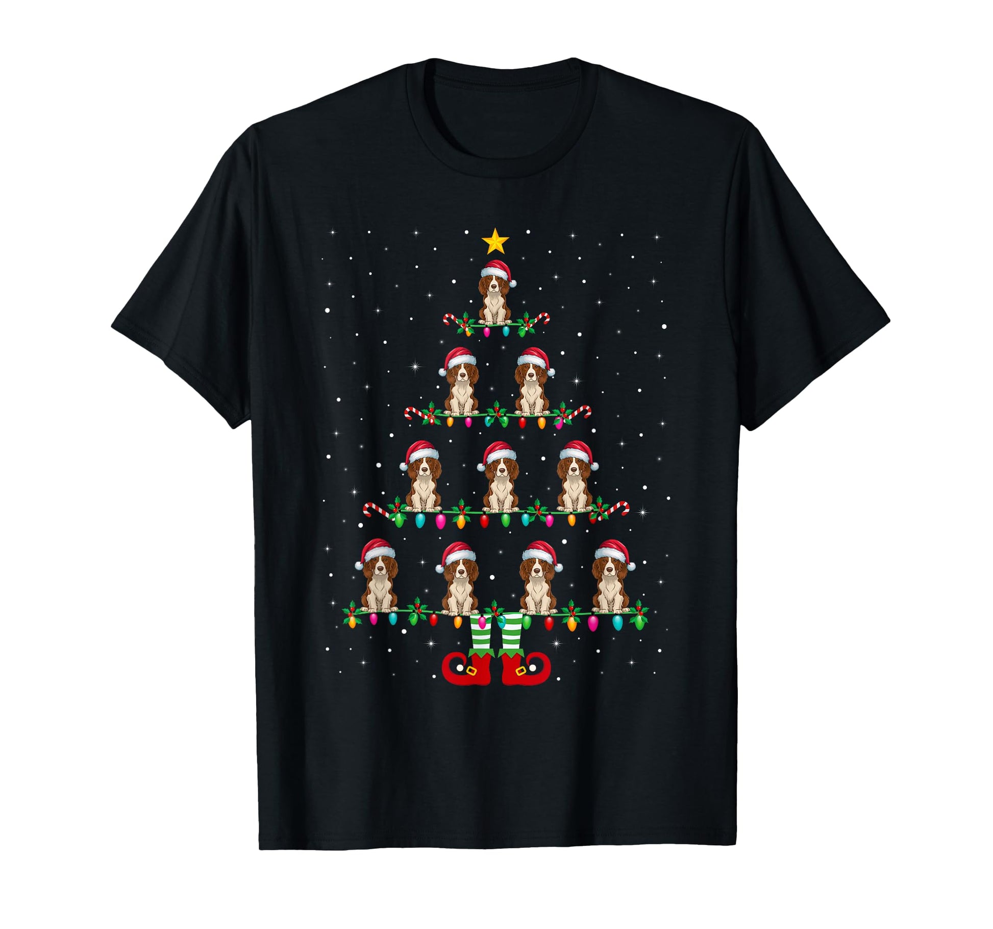 Christmas Tree Lights Santa Hat ELF Brittany Spaniel Dog Men Women Kids T-Shirt