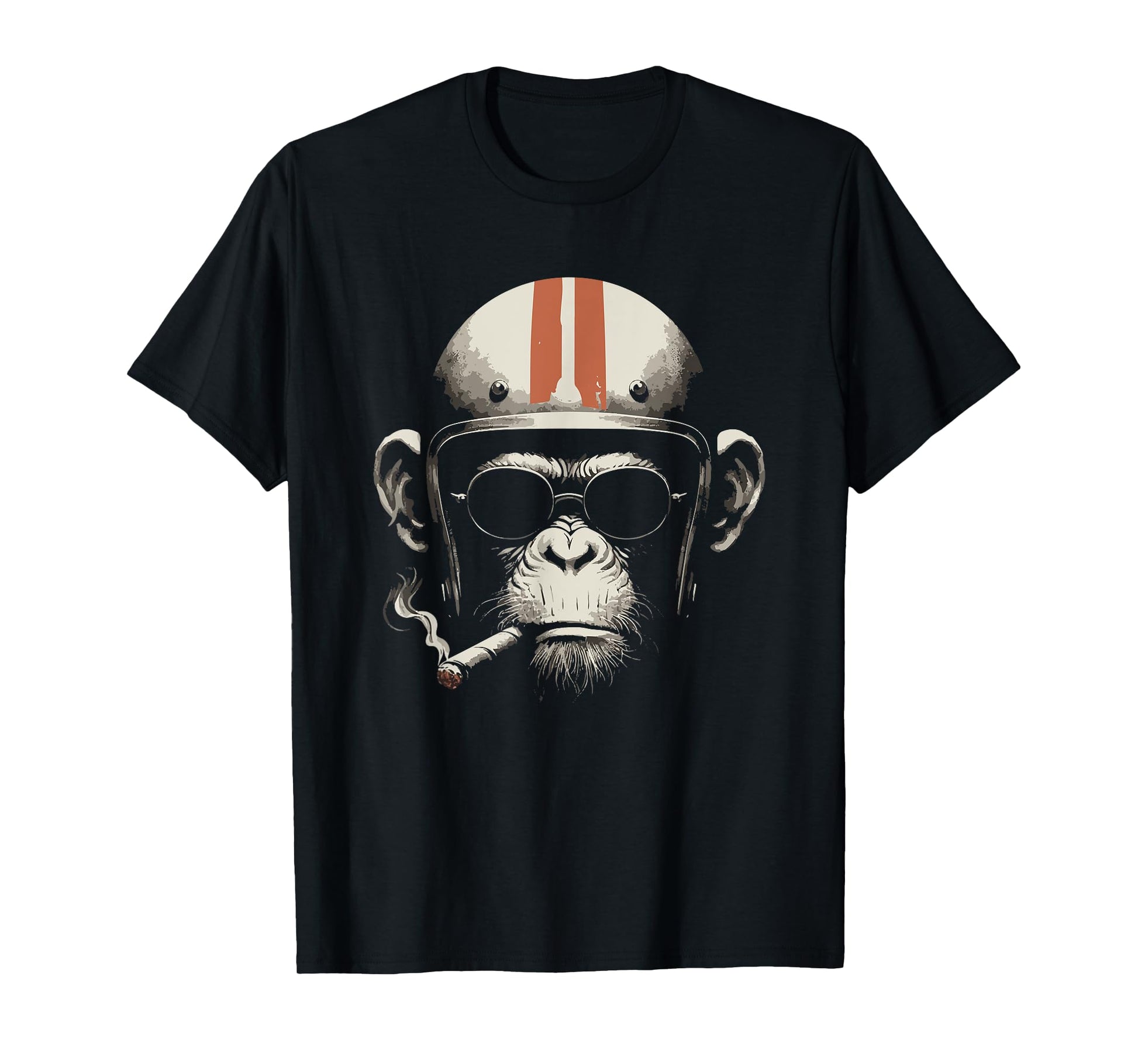 Cigar smoking monkey retro vintage motorcycle biker helmet T-Shirt