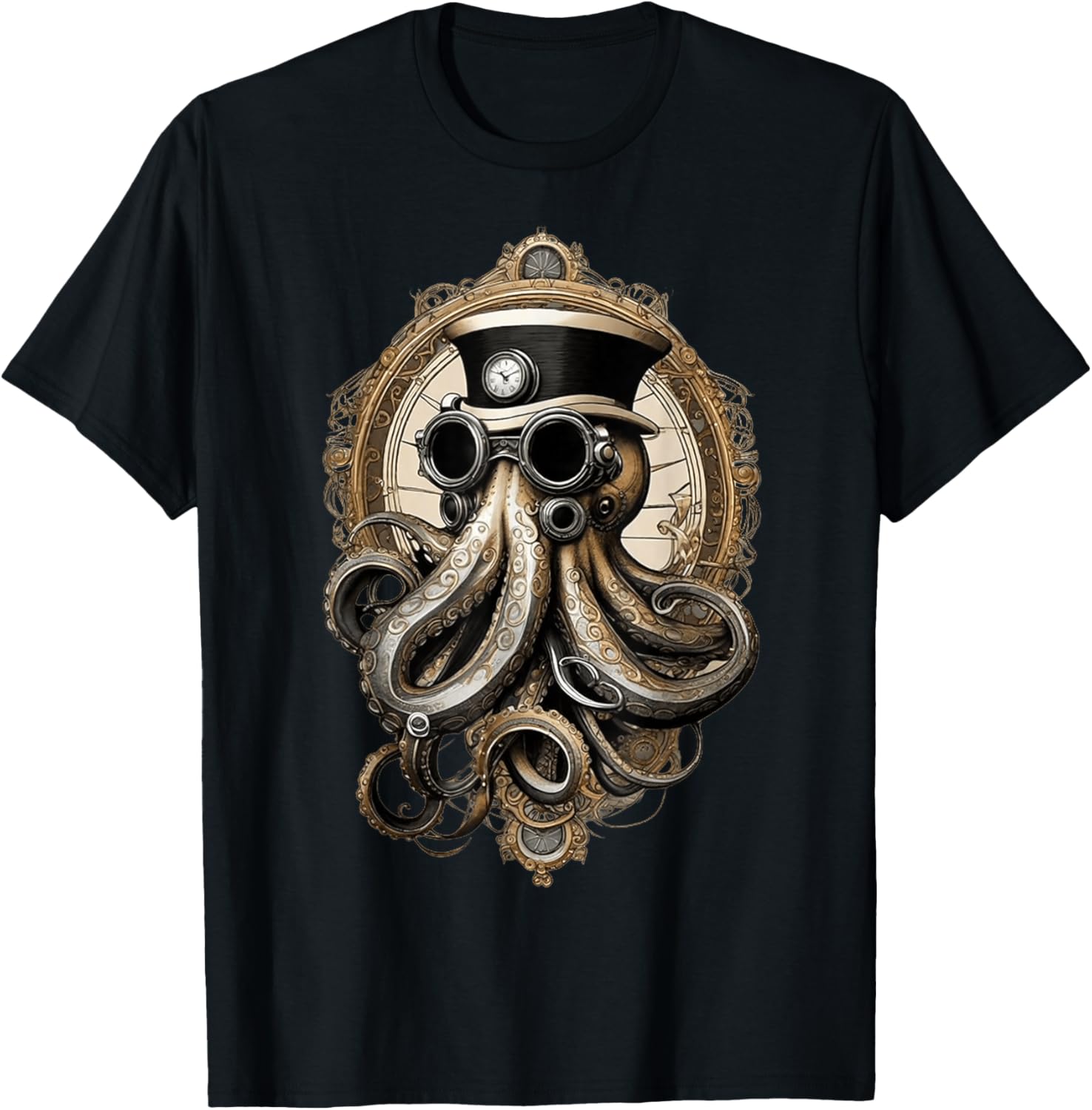 Classic Steampunk Octopus Retro Vintage Funky Fun Graphic T-Shirt