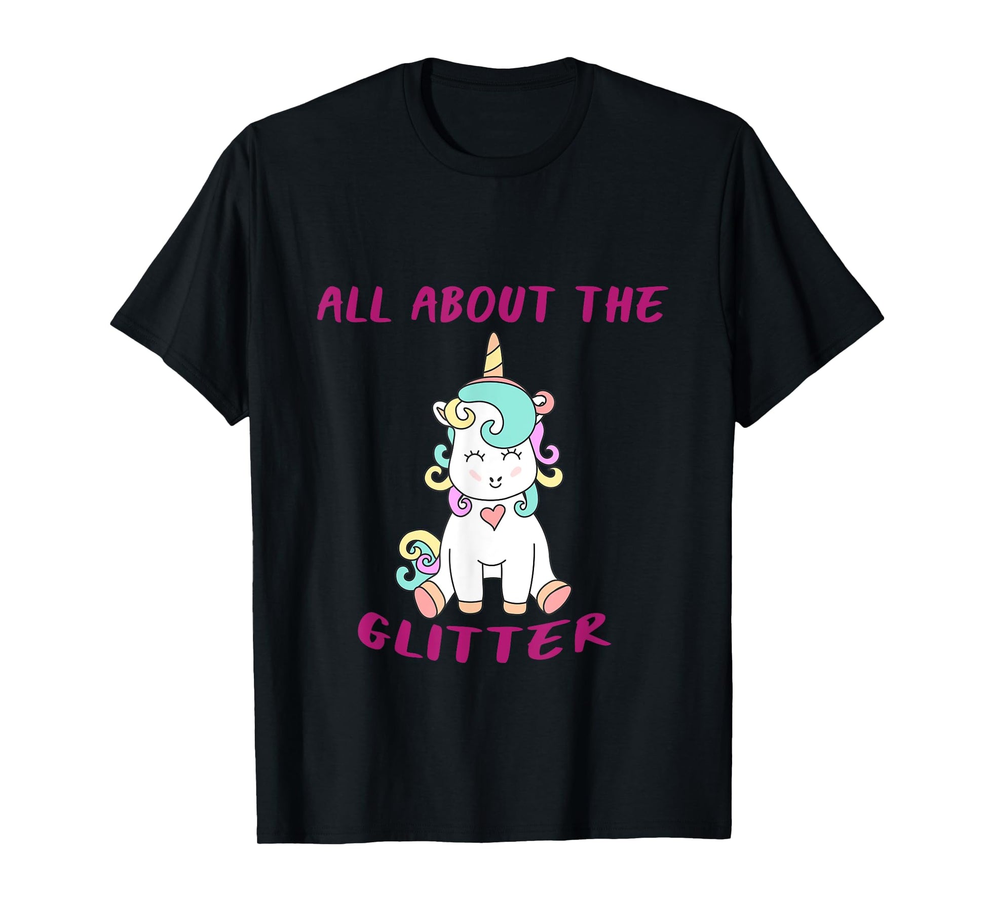 ClownTown All About The Glitter Funny Unicorn T-Shirt Kids Women's Unisex-Adults Black Short Sleeve Crew Neck T-Shirt