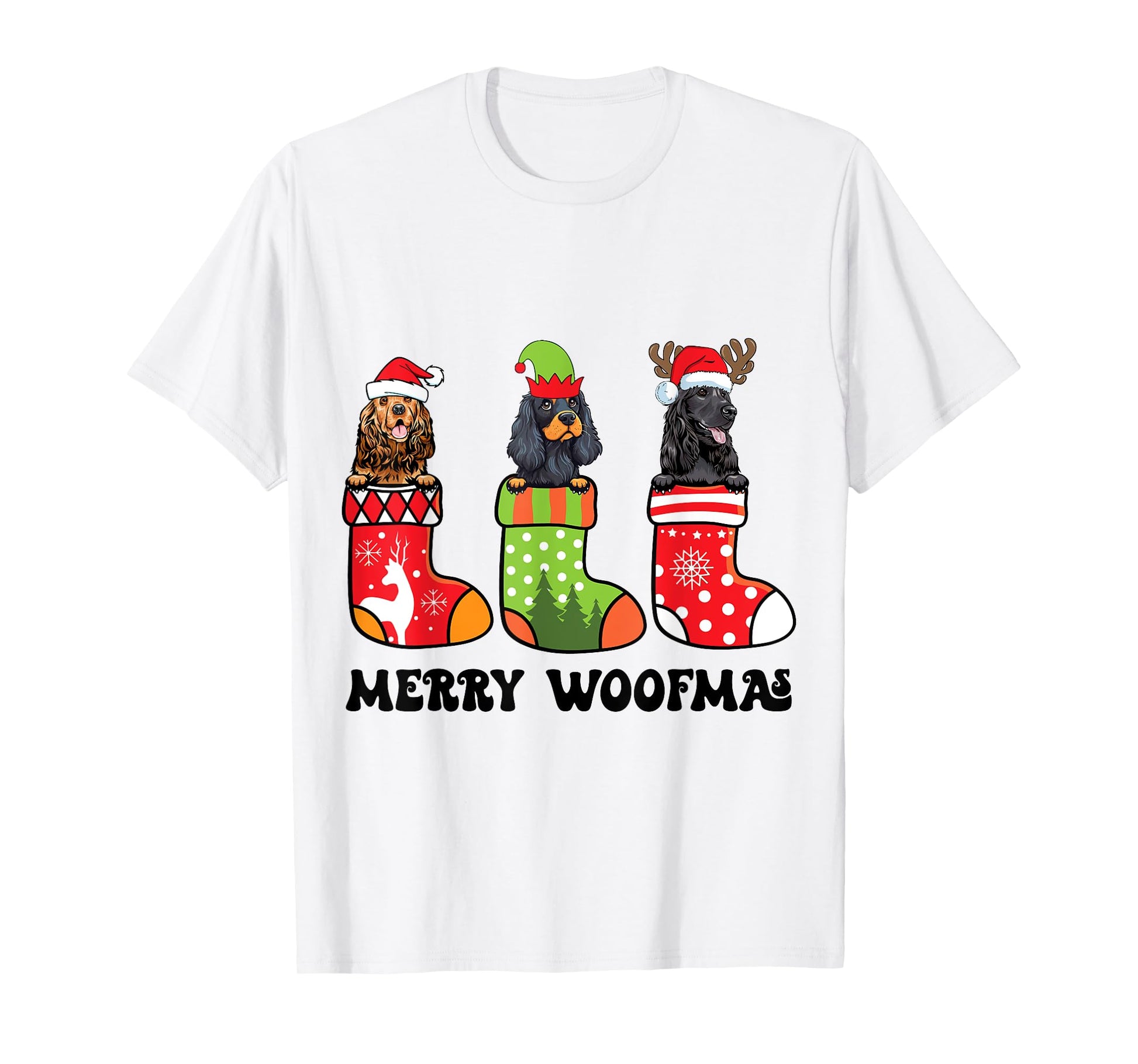 Cocker Spaniel Dogs With Reindeer Santa On Christmas Sock T-Shirt