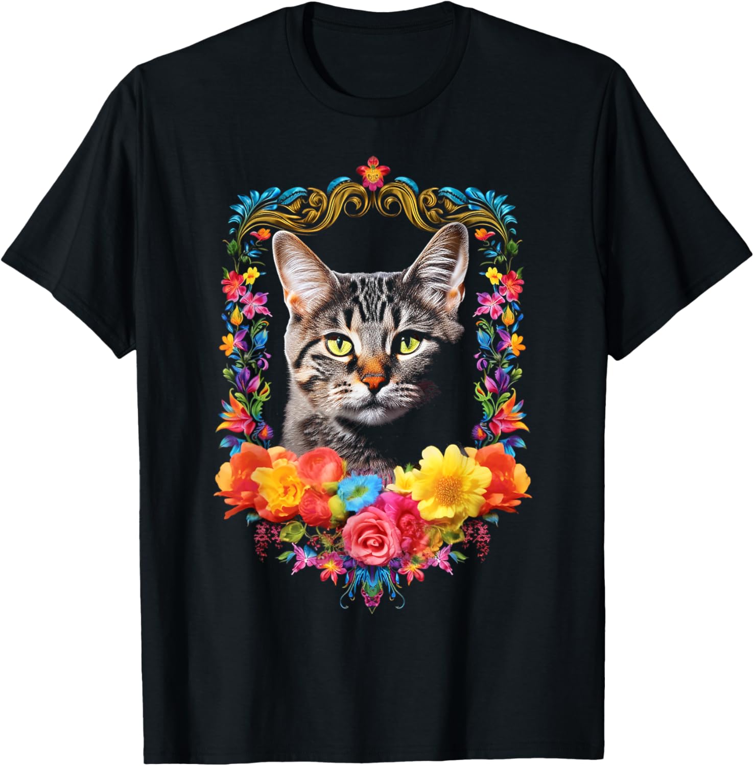 Cat Colorful Animal Flowers Art Face Graphic Cat T-Shirt