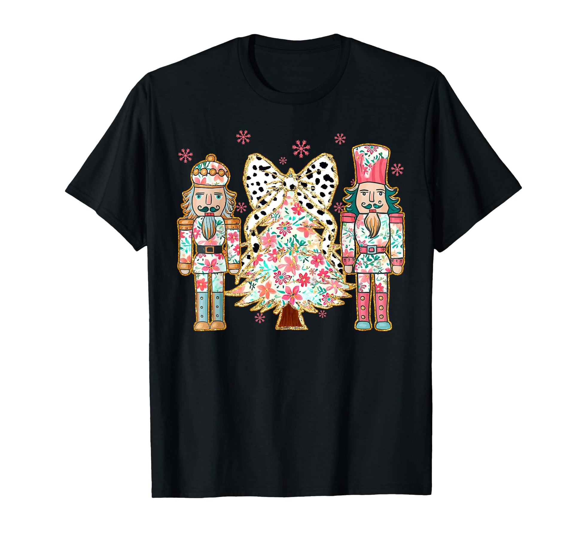 Colorful Coquette Bow Floral Nutcracker Christmas Tree Girly T-Shirt