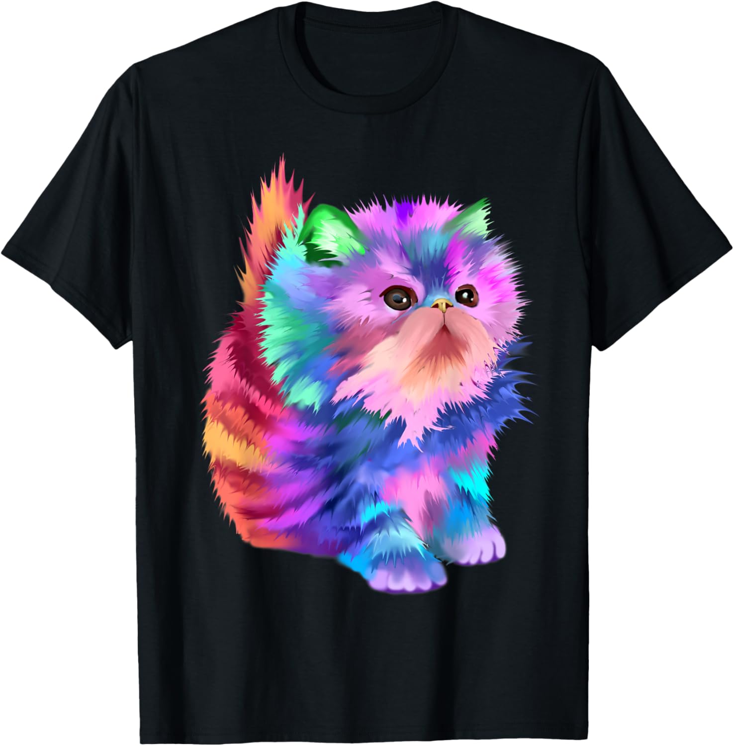 Starchild's Designs Women's Retro Rainbow Kitten Rave Psychedelic Cat T-Shirt