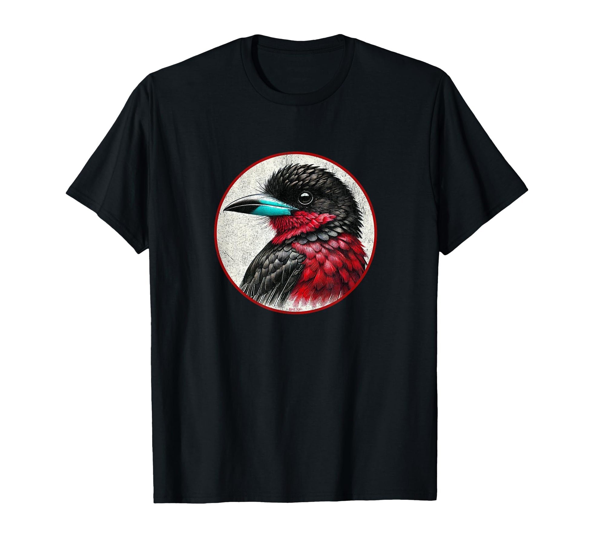 Colorful Retro Black and Red Broadbill Bird Design T-Shirt