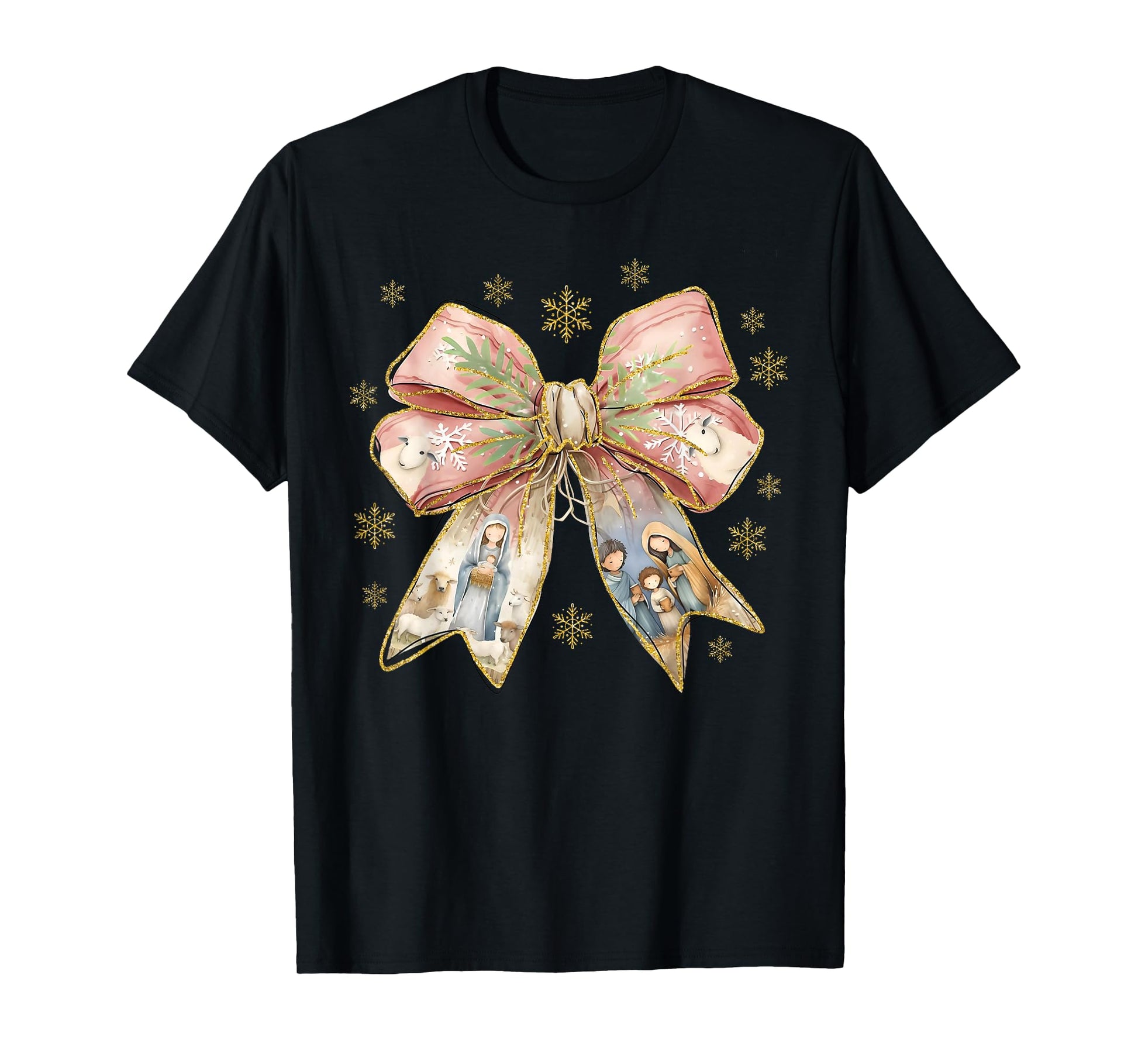 Coquette Bow Snowflake Jesus Christmas Xmas Holiday Family T-Shirt