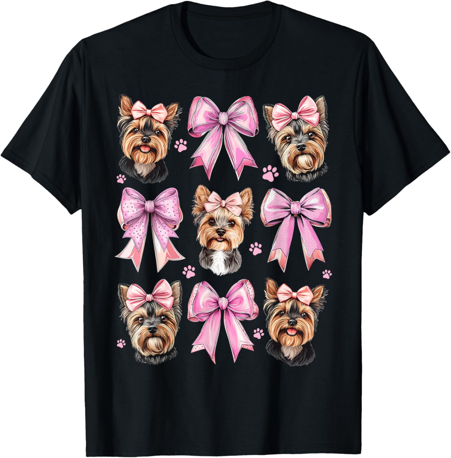 Coquette Bow Yorkshire Terrier Dog Yorkie Mom Girl Pink T-Shirt
