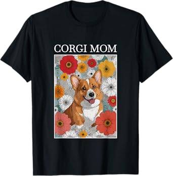 Corgi Mom Artsy Flower Dog Design T-Shirt