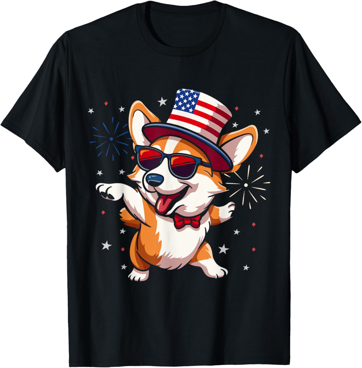 Patriotic American Corgi Dancing USA Flag Dog 4th Of July T-Shirt