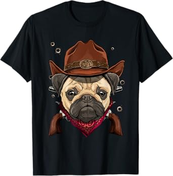 Cowboy Pug Western Rodeo Cowboy Hat and Bandana Dog T-Shirt